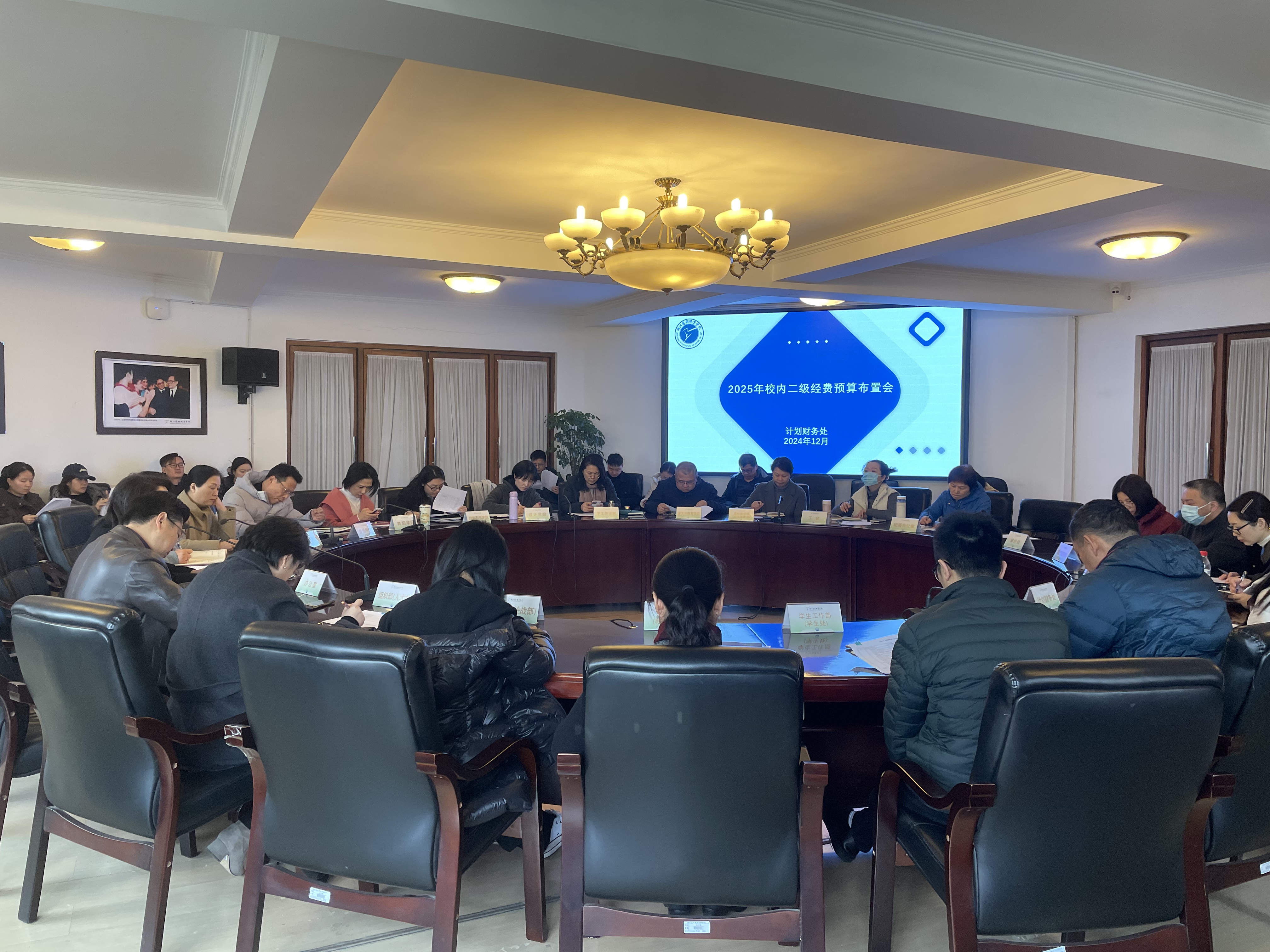 在学校持续推进深化改革背景下,为加强学校预算资金统筹高效使用,进一步优化资金使用结构,12月27日,计财处召开2025年校内二级经费预算布置会议。党委委员、副校长刘杨,各行政、教辅部门负责人及财务专管员,二级学院负责人、办公室主任及财务专管员参会。