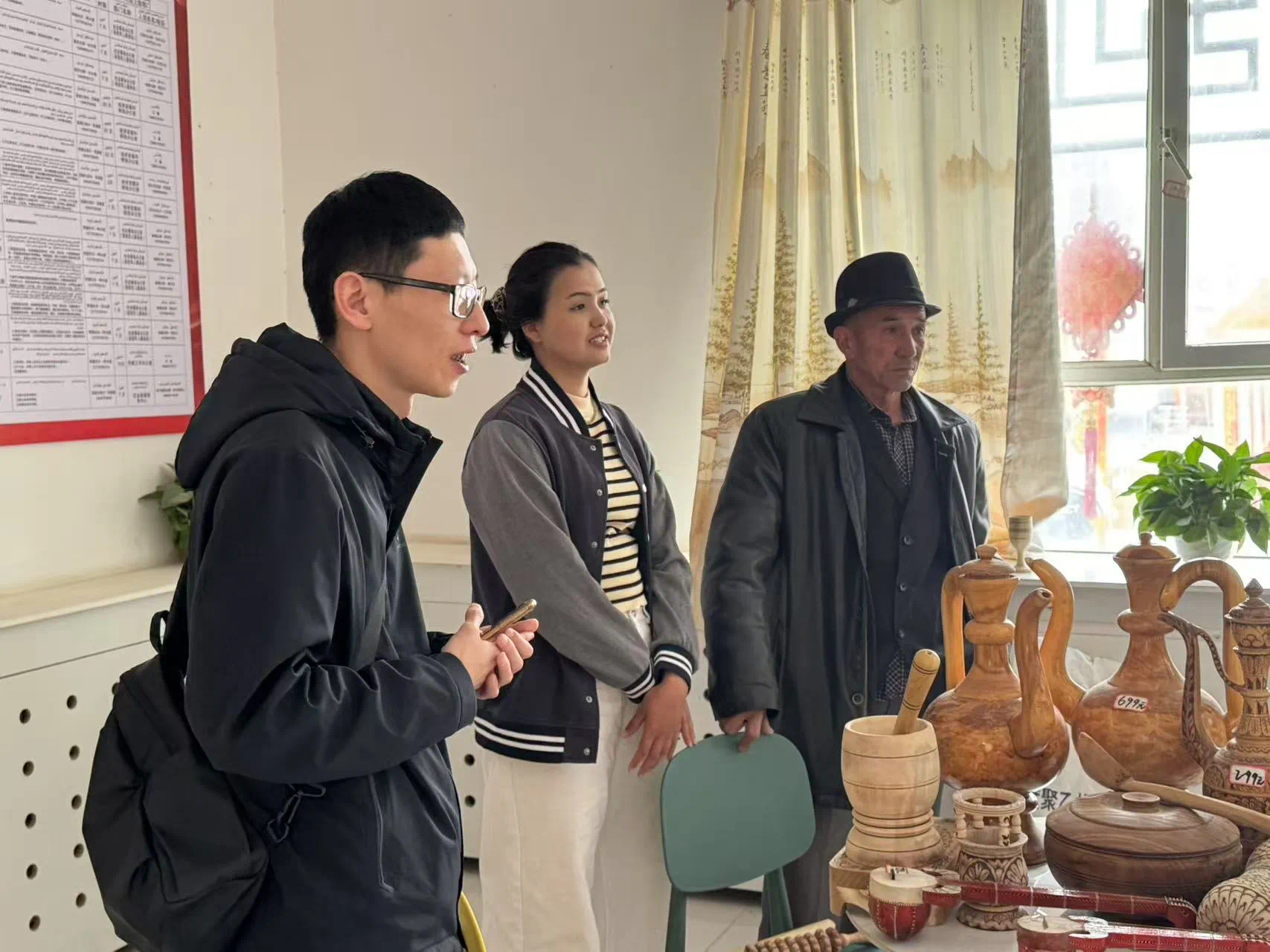 此次行程旨在通过实地考察乡村文化示范点、组织座谈会等多种形式,共同探讨校地合作推动文化润疆工作的有效途径。调研团队深入阿克苏地区,实地走访了拜城县察尔齐镇巴扎五村文化礼堂、拜城县亚吐尔乡新时代文明实践所、柯坪县柯坪镇红旗社区、库车市玉奇吾斯塘乡甬库同心村文化礼堂等24个乡村文化阵地。通过现场考察、座谈交流、资料查阅等形式,调研组详细了解了各文化礼堂的功能定位、服务对象及运营情况,并重点围绕村史村情、民俗传统、特色物产等展开调研。在掌握基层实际需求的基础上,团队结合当地文化特色和群众意愿,提出了展陈主题策划与内容优化方案,旨在通过文化空间改造、数字化展示等手段,将乡村文化礼堂升级为集思想引领、文化传承、便民服务于一体的新时代文明实践阵地,进一步激活乡村文化活力,助力乡村振兴。