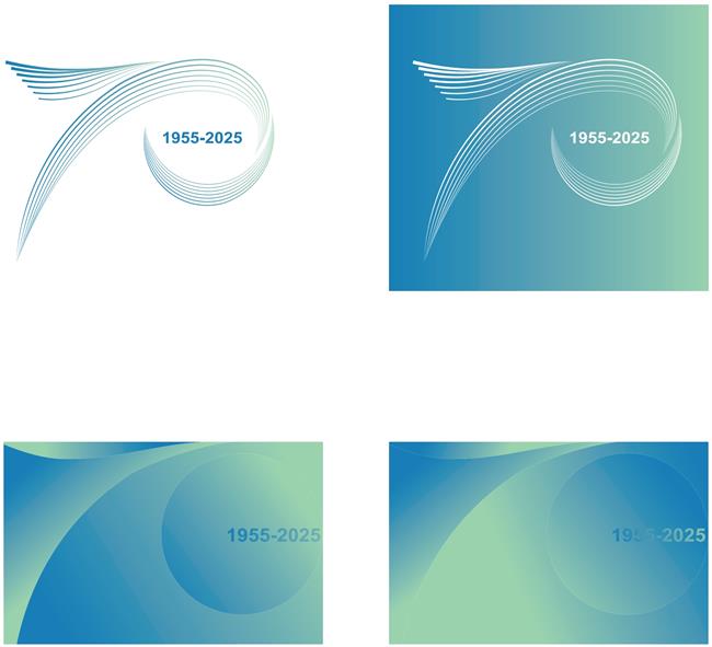 标志的辅助图形采用“70”数字元素进行设计。设计形式包括旋律线条构成、艺术渐变构成。在校庆活动过程中,平面物料、环境空间在标志图形、标志组合的应用中,可以使用辅助图形进行搭配、辅助设计,设计应用过程严格并灵活按照辅助图形的组合规范进行使用。