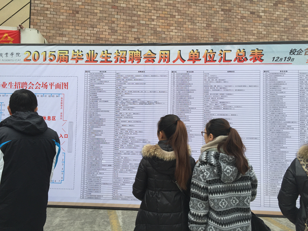 又是一年毕业季。12月19日,浙江艺术职业学院体育馆,一场2015届毕业生招聘会在气氛热烈地进行着。毕业生招聘会是浙艺院每年开展的传统项目,今年的招聘会吸引了来自北京、上海、江苏、广东和浙江省内各地的190家用人单位前来招纳贤才,为浙艺院1085名毕业生提供了2200多个就业岗位,招聘会现场呈现供需两旺的火热场面。学生共投递简历1694份,初步达成就业意向605人。通过学院招聘会,为需要就业的毕业生提供了更快捷的就业机会。