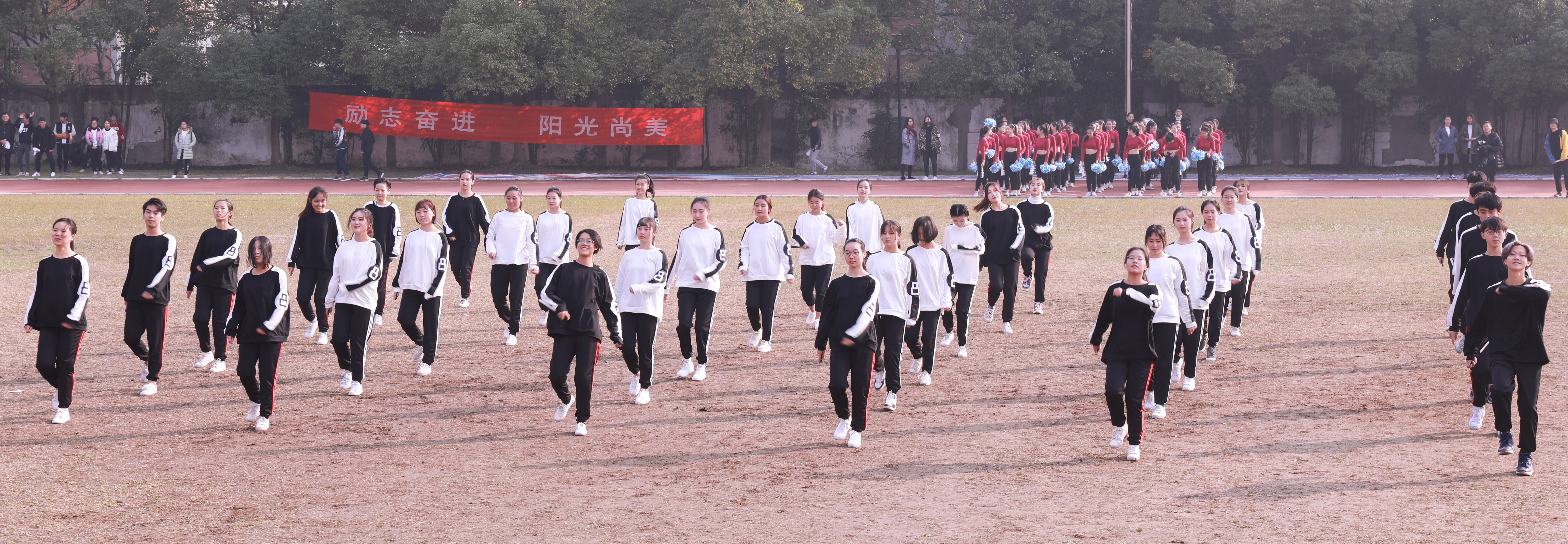 开幕式上进行了广播操和团体操的比赛。广播操比赛中,同学们用整齐规范,有力到位的动作展现了浙艺学子积极进取的精神风貌。团体操的比赛堪称精彩绝伦,各系学子精心准备,结合专业发挥了各自的特长,有舞蹈,有RAP,展现了艺术与体育的糅合之美和综合类艺术院校学子的多才多艺。同学们的激情,温暖了这个冬日。相信即使在若干年后,浙艺田径场上的每一幕都是值得回忆的青春。