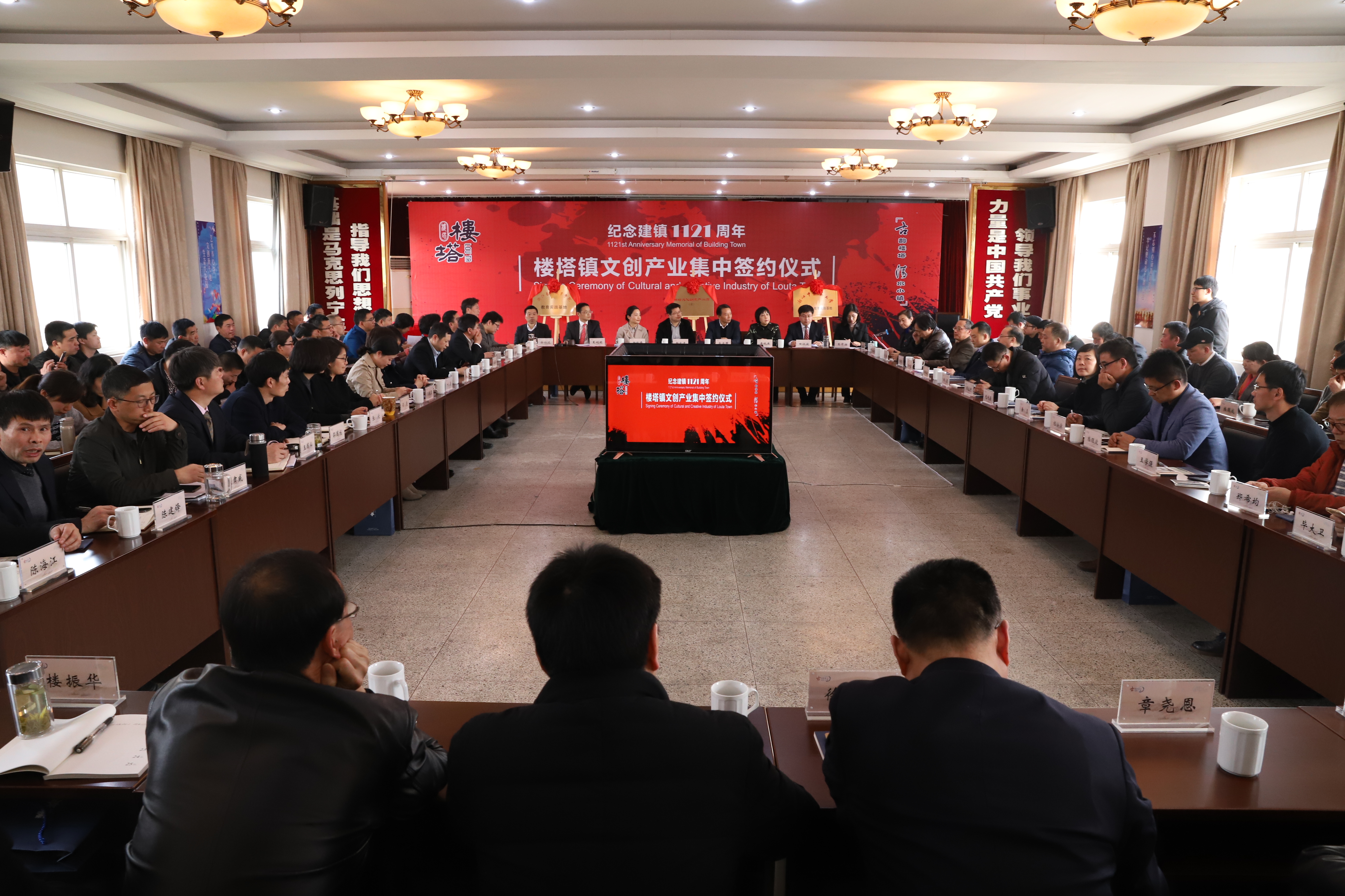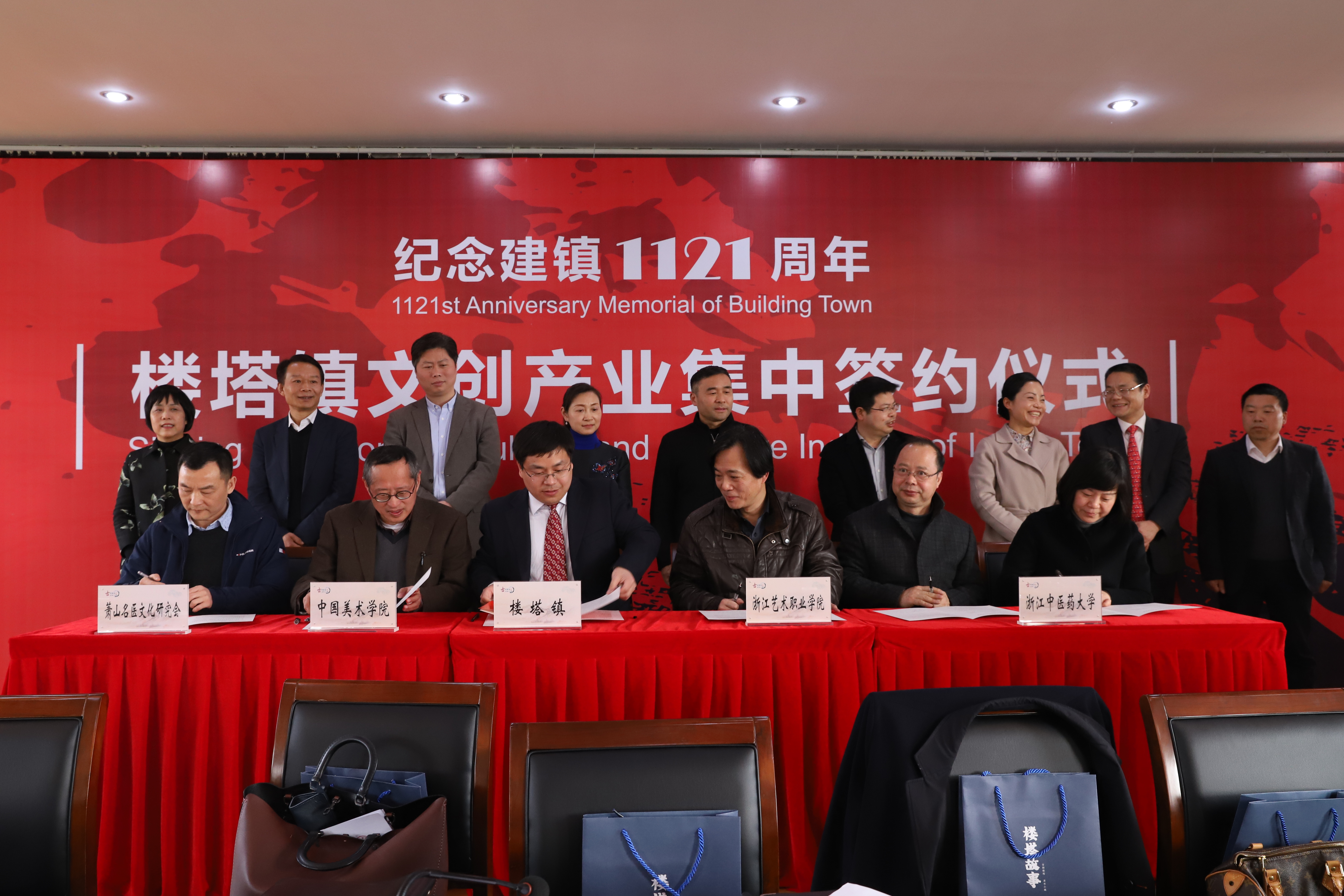 3月9日,楼塔镇建镇1121周年暨文创产业集中签约仪式举行,出席本次仪式的领导有萧山区委常委、宣传部长赵文虎、萧山区人大常委会副主任高卫国、萧山区人民政府副区长杨晓峰等,浙江艺术职业学院院长黄杭娟、副院长沈恒等一行前往萧山区楼塔镇人民政府参加仪式。