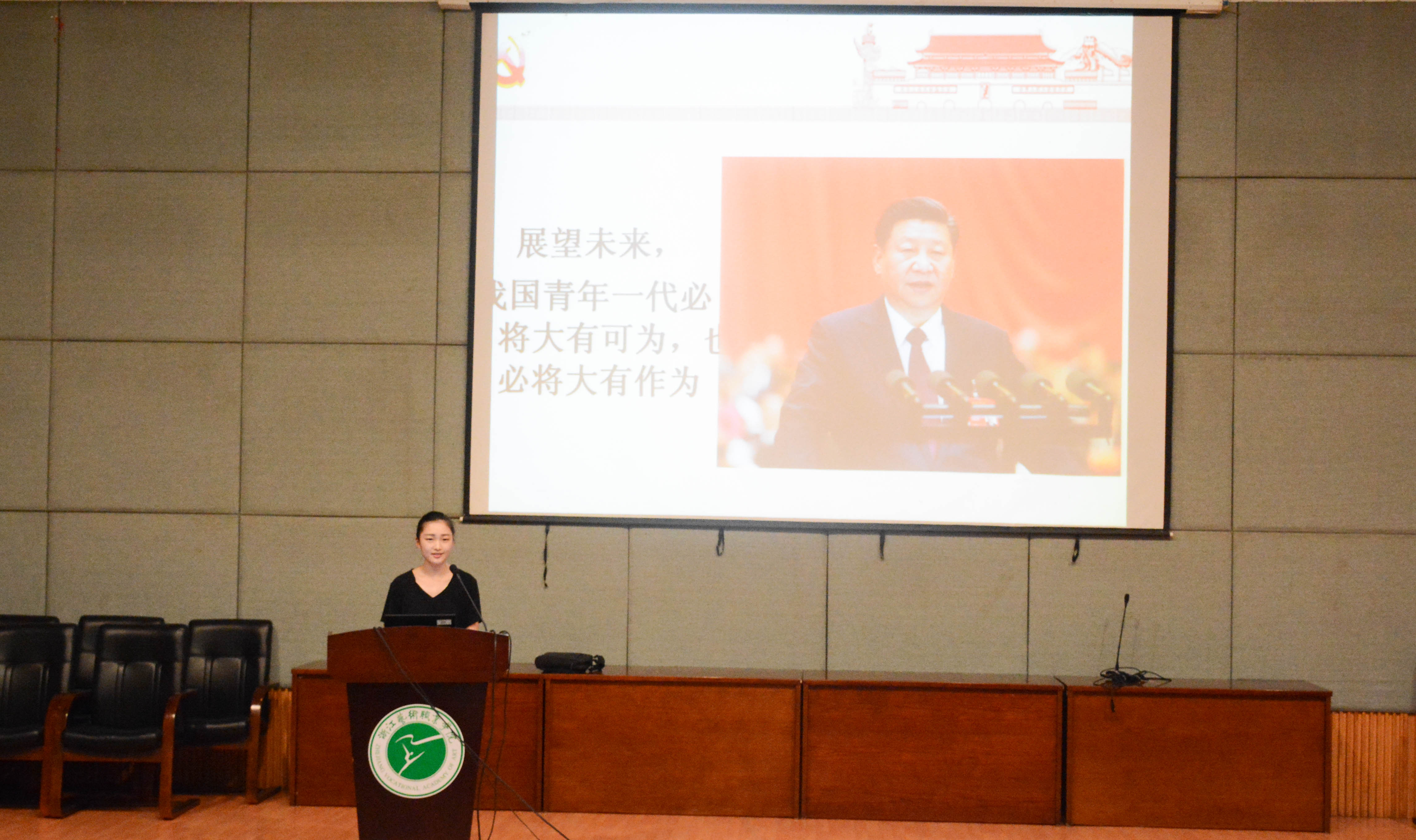 比赛现场气氛紧张热烈。每位选手的讲课都让师生们展开联想。当提到“新时代,我们的担当”时,台下的学员们会思考,担当是什么,我们能为新时代做什么。每个职业有每个职业的担当,作为大学生,作为浙艺学子,我们在心里默默想着,要担起自己的责任,发挥自己的专业特长,做志存高远的社会主义新青年,为实现中华民族伟大复兴的中国梦而努力。