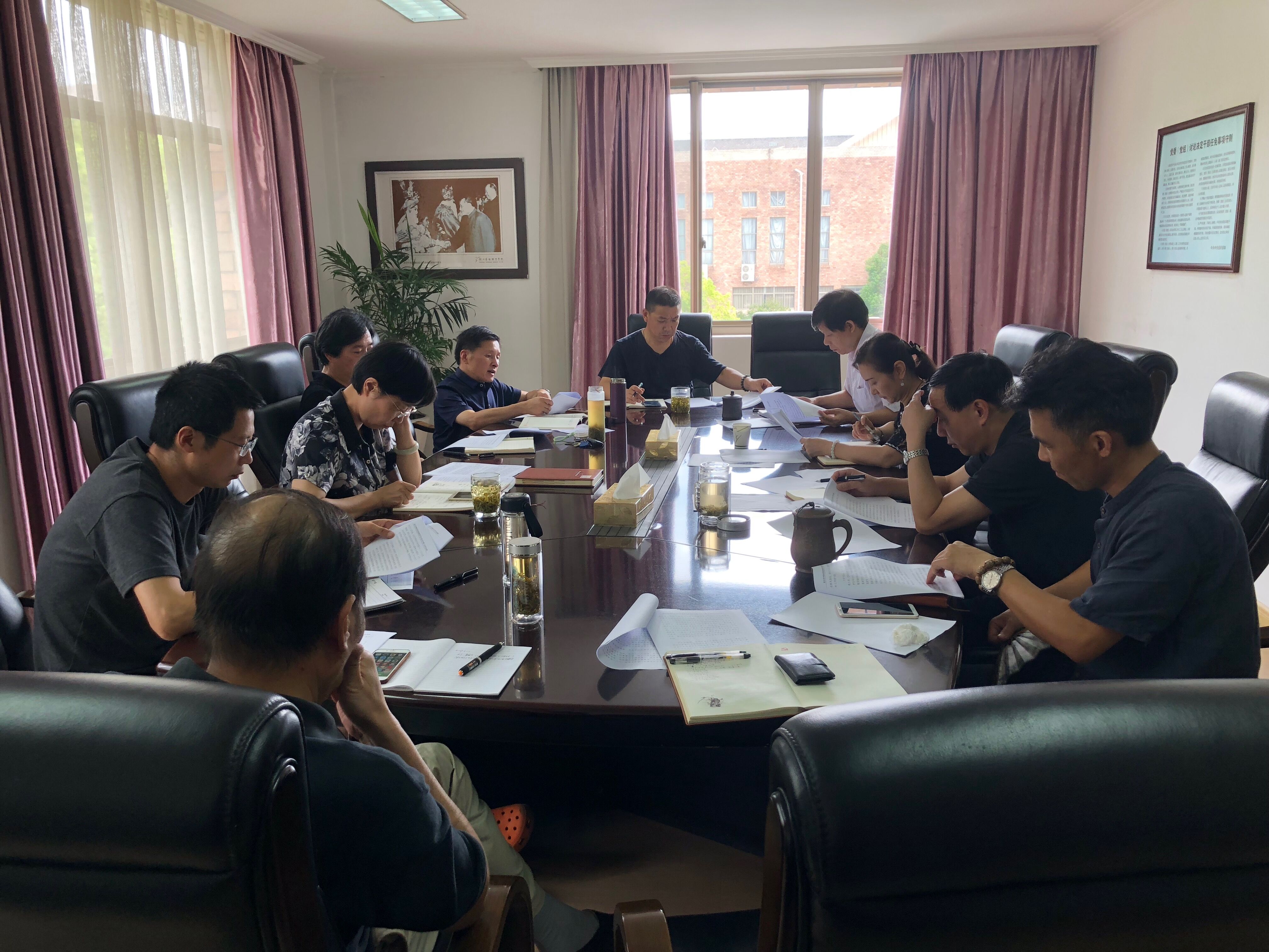 8月27日上午,校党委理论学习中心组2018年第14次学习会在行政楼三楼小会议室举行。党委书记朱海闵主持会议。全体党委班子成员参加学习。会议认真学习习近平总书记在全国宣传思想工作会议上的讲话精神,传达学习了全省组织工作会议精神和省文化系统纪检监察会议暨学习省纪委十四届三次全会精神专题学习会上的讲话精神。