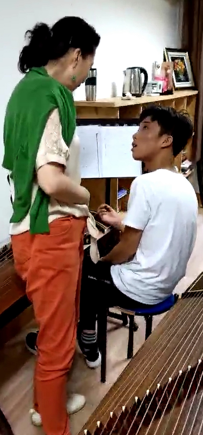 在人民的认识中,筝是一件颇为女性化的传统民族乐器。俞嘉睿是本次“国赛”我校4名获得一等奖选手中唯一的男生,也是本届大赛舞台上以筝作为参赛乐器的为数很少的男选手之一。对于男性在筝教学、表演等方面的未来发展趋势,曾玉珍表达了颇多感想。她说,筝的主要流派河南派、山东派、客家派、潮州派、陕西派,包括我们浙派,创始人都是男性,我国古代历史上有名的古筝大师也几乎都为男性。“以前弹筝的人,男女都有。后来在发展进程中,慢慢出现了性别失衡问题。”曾玉珍笑着说。这些年,男性筝表演艺术家多了起来,频繁现身于舞台,涌现出了中国音乐学院博士生导师、中国音协古筝学会会长王中山,陕西筝派主要代表人物、著名古筝演奏家周展,第七届“金钟奖”金奖获得者、浙江音乐学院青年教师刘乐等一众男性表演艺术家。“男性在力量上占有先天优势。有了足够的力量储备,弹拨琴弦时才能更加收放自如,让乐曲更具有筋骨感。俞嘉睿的性别优势为他在比赛曲目的演奏上带来了极大便利,他弹的《苍歌引》别有一番韵味。”曾玉珍如是说。