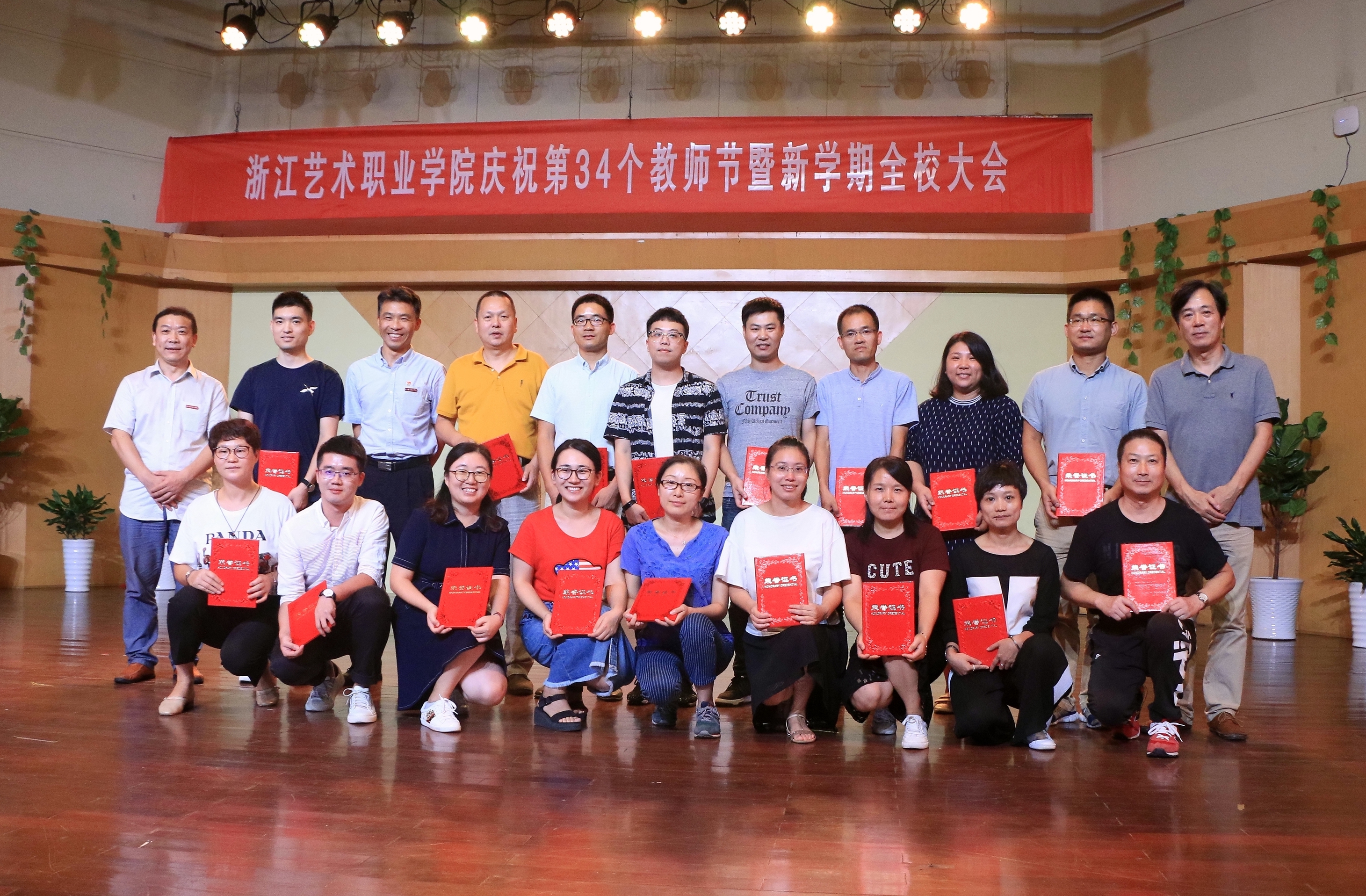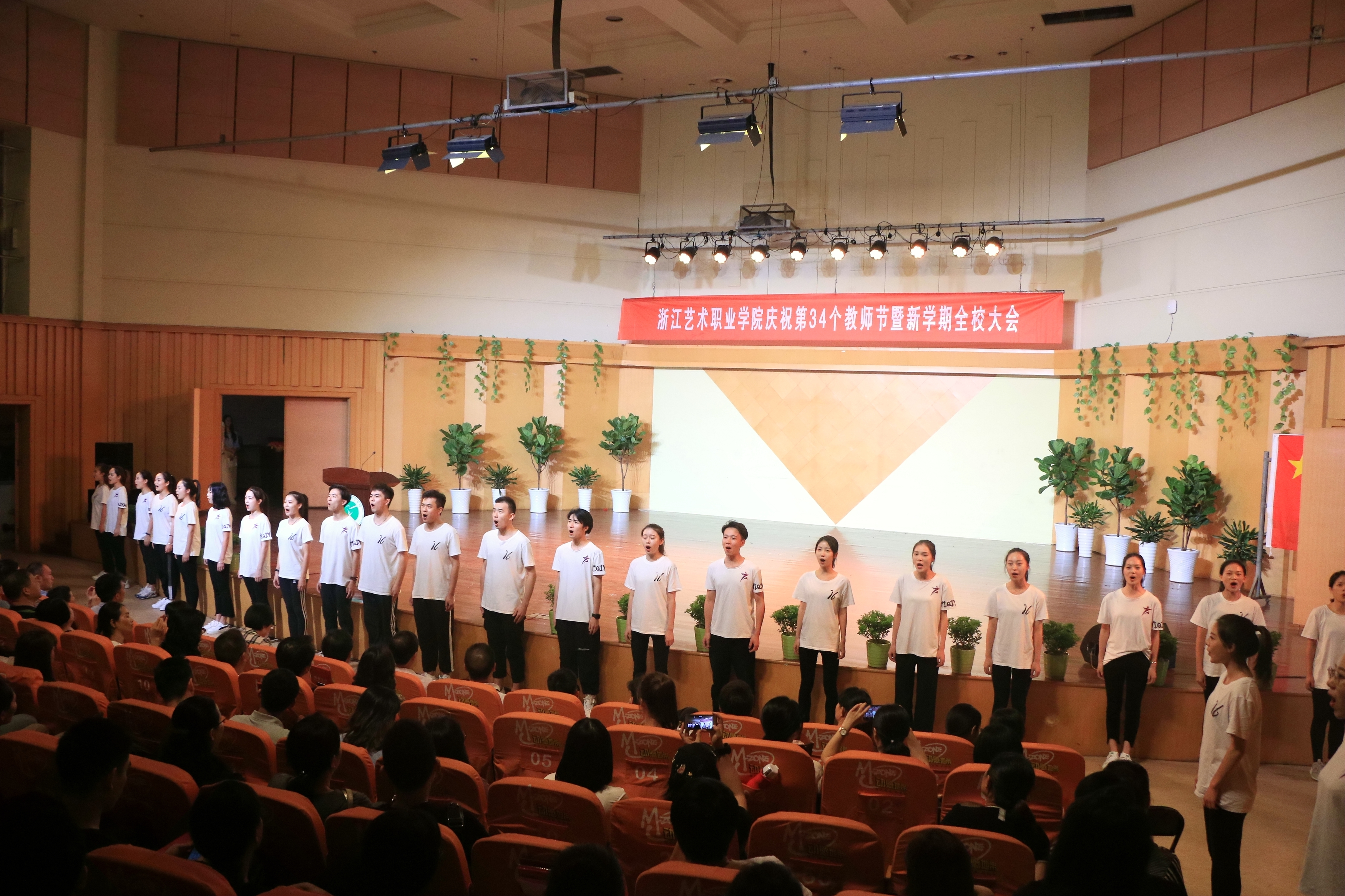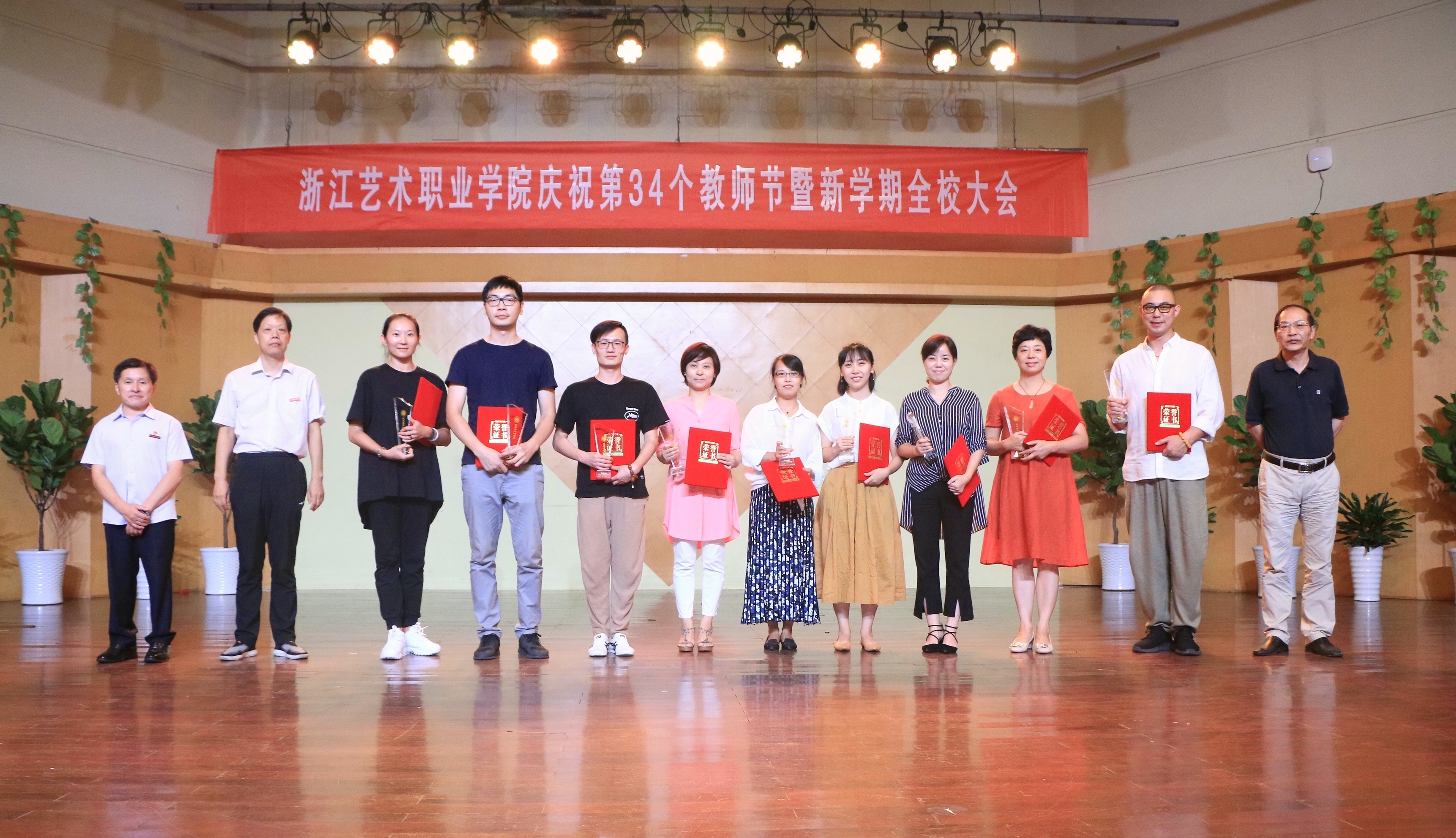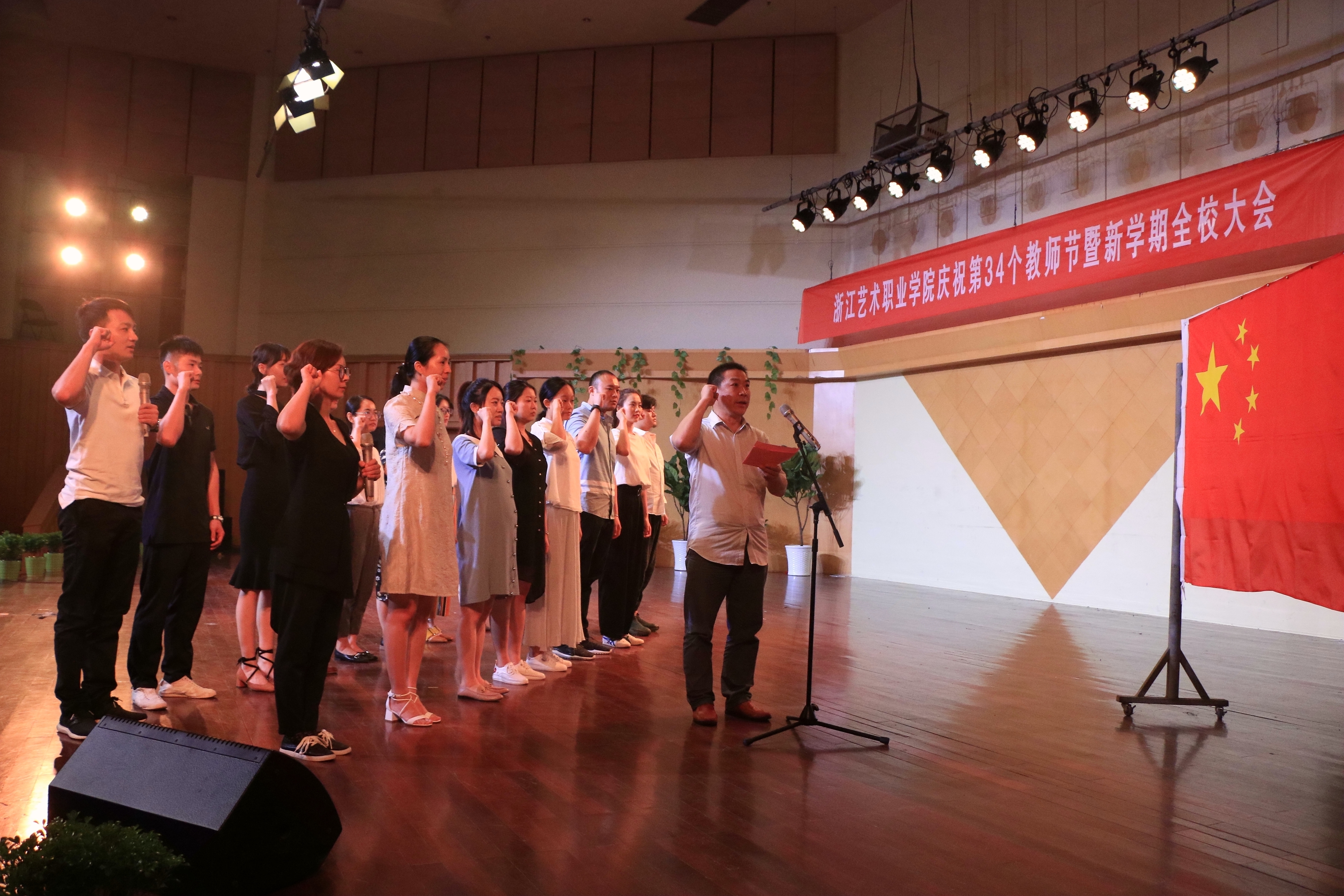 9月19日下午,浙江艺术职业学院庆祝第34个教师节大会暨新学期全校大会在音乐厅举行。校领导朱海闵、黄杭娟、夏开堂、章轲、沈恒、徐芳、沈军甫、王涛、马向东出席,全院教职工参加大会。党委副书记夏开堂主持大会,他代表校党委领导班子向过去一年来在各个岗位上辛勤工作、默默付出,为学校发展和学生成长成才做出不懈努力的全体教职工送上亲切的问候和诚挚的感谢。