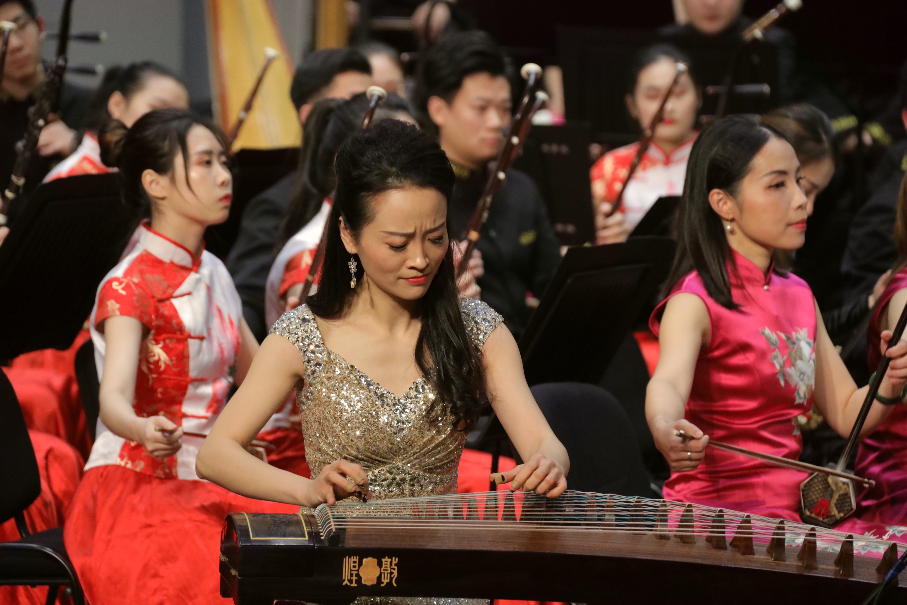 琵琶协奏曲《云想·花想》用唯美的女性化旋律及灵动雀跃的舞蹈性节奏,展现了娓娓道来的深切情思。担任琵琶独奏的青年教师张凌曾获2015年浙江省“新松计划”青年演奏员大赛一等奖等专业赛事佳绩,并于2018年10月成功举办了“新松计划”琵琶专场音乐会。