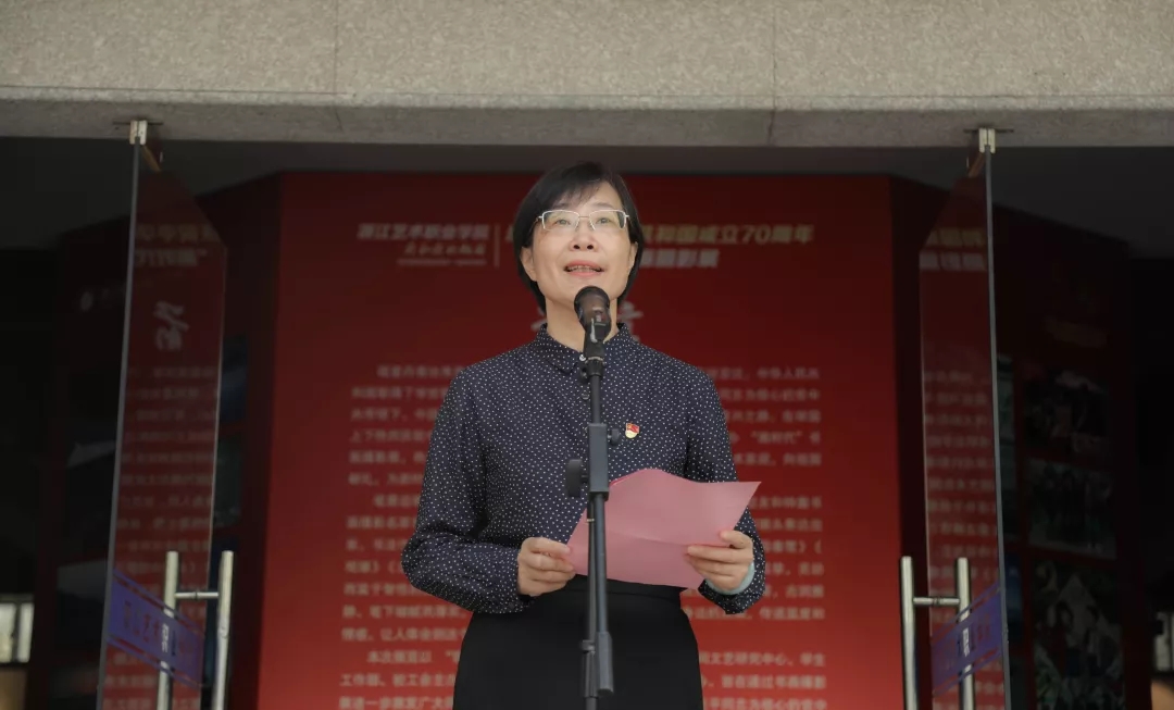 朱海闵致辞。她表示,70年沧桑巨变、70年伟大历程,在举国上下热烈庆祝中华人民共和国成立70周年之际,学校举办主题书画摄影展,表达师生们对祖国母亲的由衷祝福,抒发“奋进新时代,共筑强国梦”的澎湃激情,营造良好的校园文化艺术氛围。参展的每幅作品都源于作者的真实生活与真切感受,是新中国70年光辉历史的鲜活侧面,是几代人对国家更发展、人民更幸福的生动记忆,是中华民族迎来从站起来、富起来到强起来伟大飞跃的艺术写照,是对伟大的中国共产党、伟大的中国人民和伟大新时代的热情礼赞。