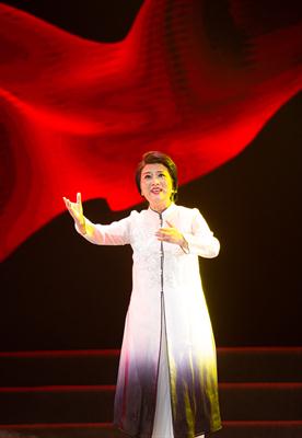 台上演员和观众全体合唱了《歌唱祖国》,国旗挥起来,歌声响彻剧场内外,共同祝祖国生日快乐,祝福祖国越来越好。