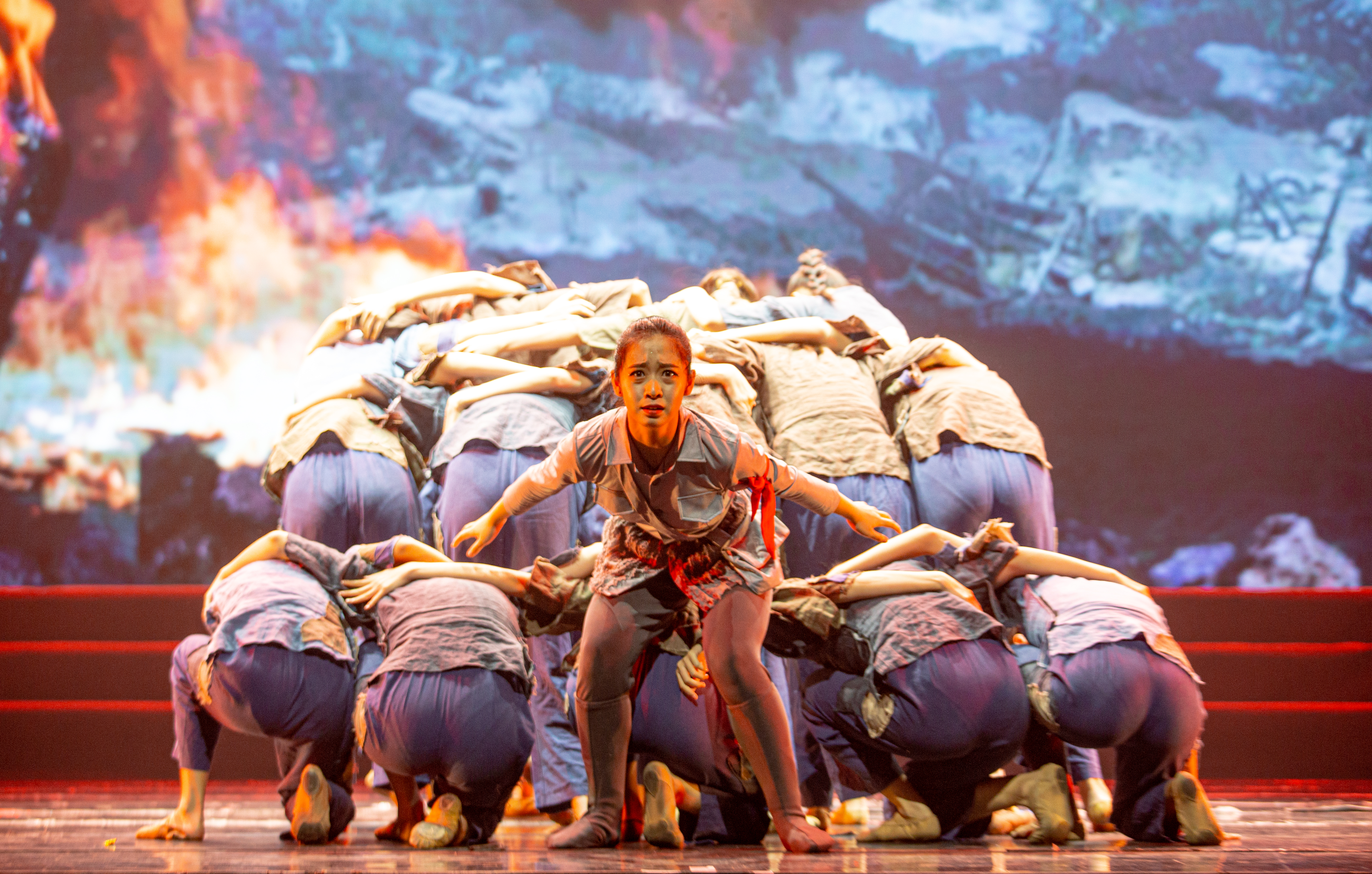 2019级新生、小百花班学生陈可心挥舞着国旗首先出场,“我和我的祖国,一刻也不能分割”的旋律点燃了现场合唱的气氛。舞蹈系群舞《烽火摇篮》演绎了抗战时期,革命战士在炮火中奋勇抗战,为了革命信念、人民幸福壮烈牺牲的场景,催人泪下。戏剧系副主任周伟君演唱了越剧专业教师吕静策划的课程思政作品、越歌《七律·长征》,气势恢宏振奋人心,台下掌声雷动。音乐系女声小组唱《洪湖岸边是我家》,清新秀丽,柔美中又带着俏皮。戏剧系青年教师郑佳艳演唱京歌《卜算子·咏梅》,一亮嗓,台下就响起一片尖叫。观众纷纷拿起手机全程录像。原创音诗画《初心》中,戏剧影视表演专业五个班级130多人集体亮相,凝心聚力,再现了党的诞生、南昌起义、红军长征等历史瞬间。