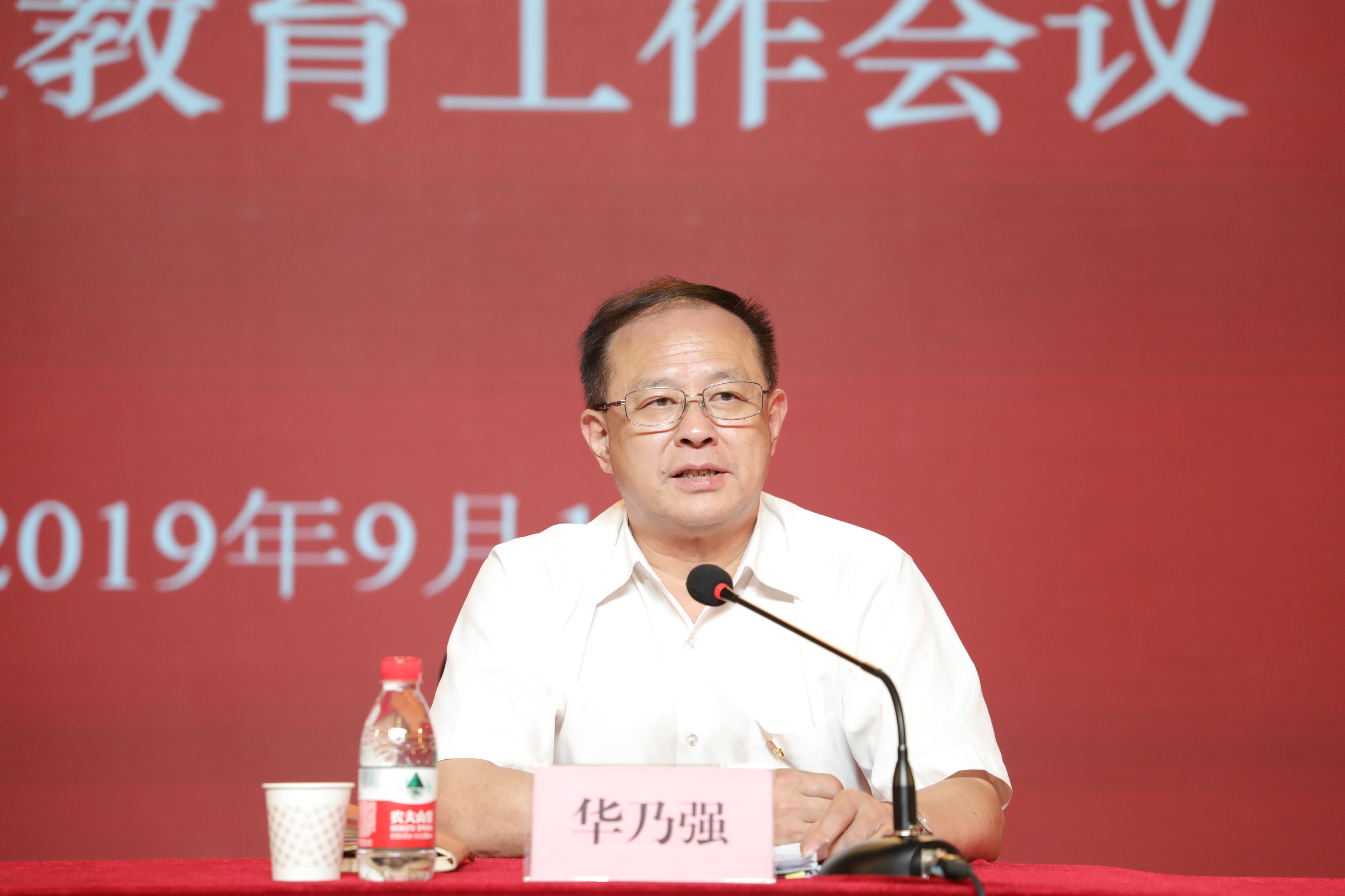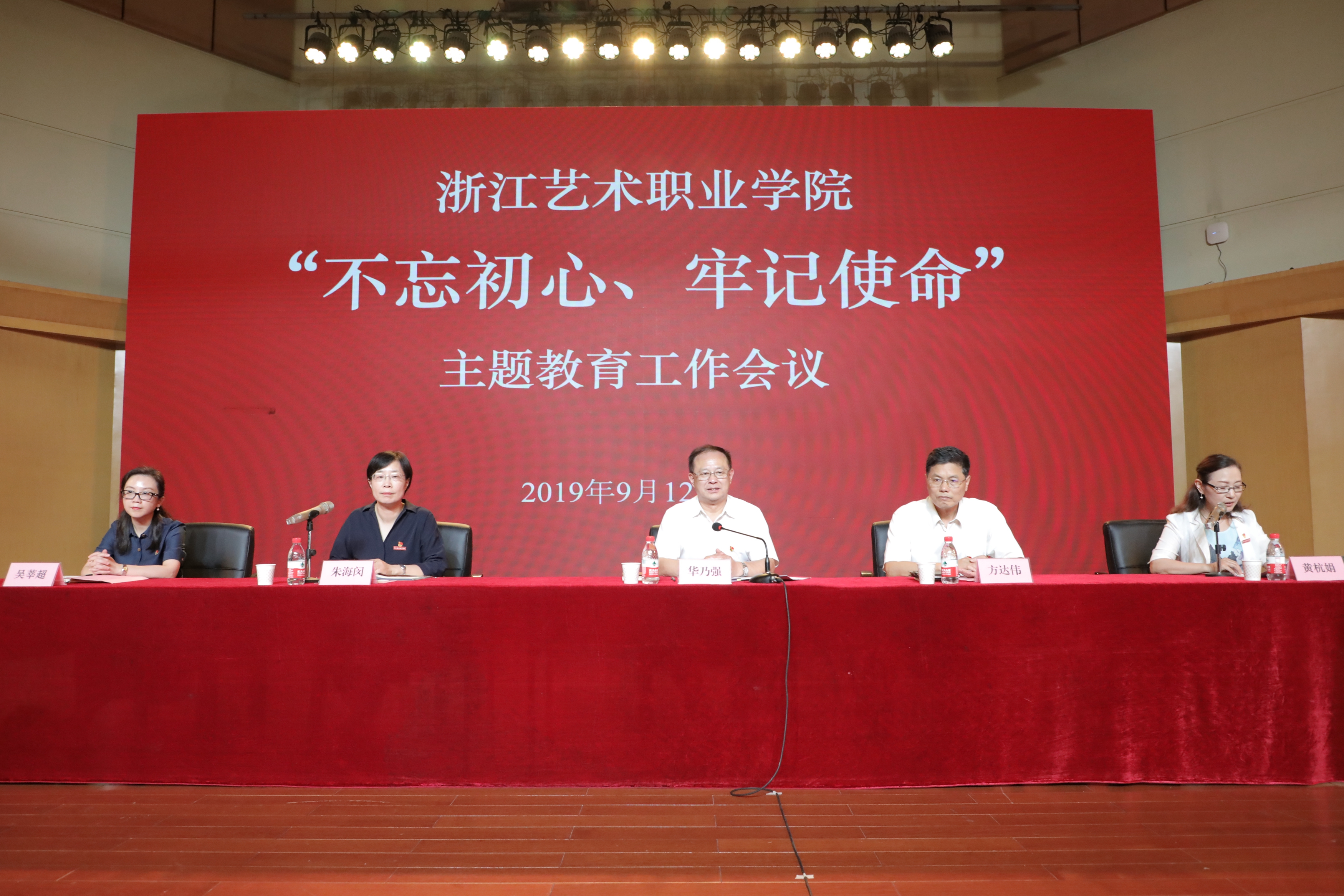 9月12日下午,浙江艺术职业学院召开“不忘初心、牢记使命”主题教育工作会议,深入学习贯彻习近平总书记在“不忘初心、牢记使命”主题教育工作会议上的重要讲话精神,贯彻落实中央和省委关于第二批主题教育的部署要求,对全校主题教育进行全面动员和重点部署,明确目标任务、工作举措和具体要求。省委主题教育巡回指导组第十四组组长华乃强出席会议并讲话,巡回指导组副组长方达伟、省文化和旅游厅直属机关党委专职副书记吴莘超、巡回指导组成员出席会议。校党委书记朱海闵作动员部署,党委副书记、院长黄杭娟主持会议,校党委班子成员、全体处以上干部、全体党员和各民主党派负责人参加会议。