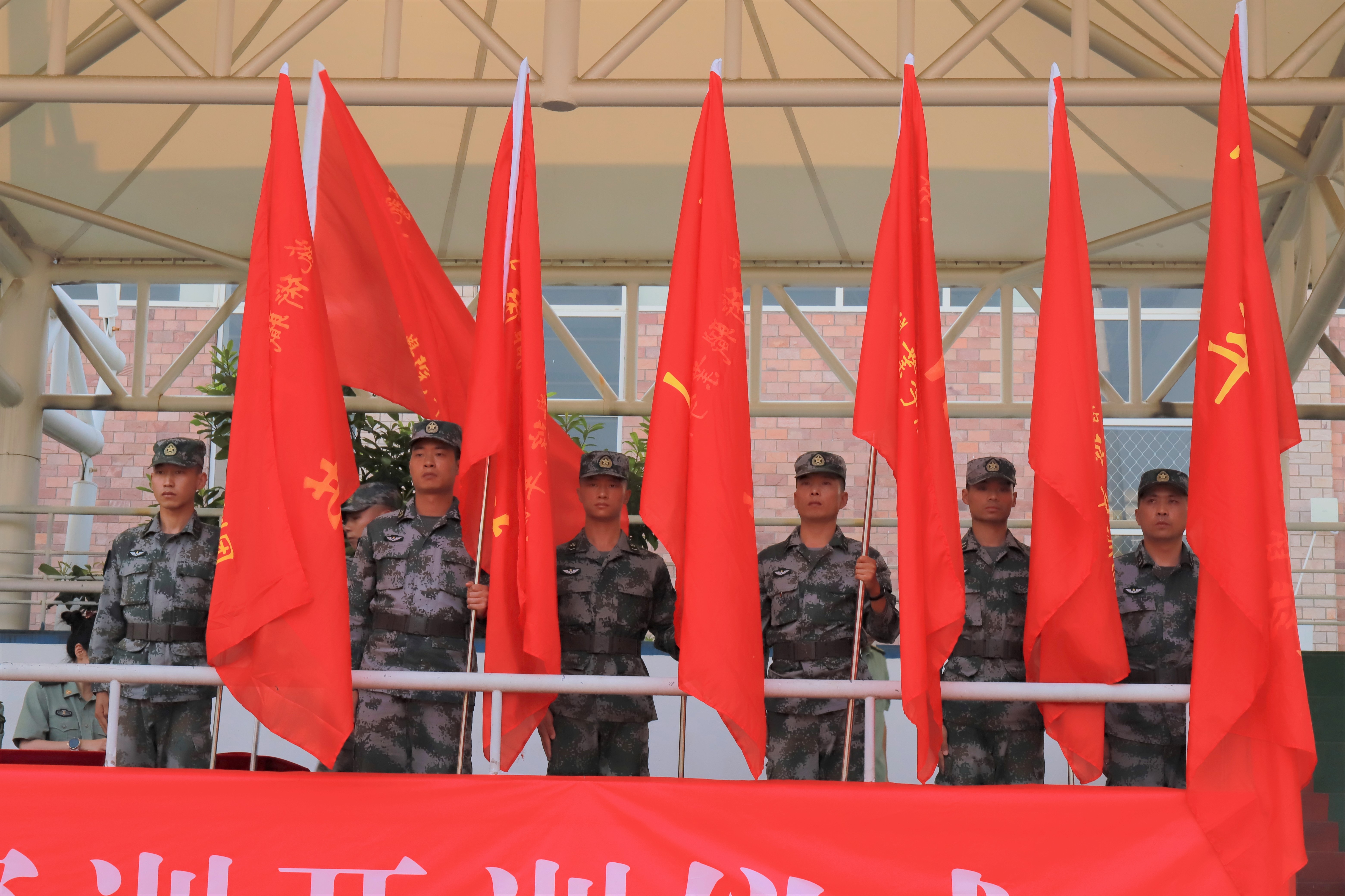 9月9日下午,浙艺2019级高职新生军训开训仪式在学校操场举行。中国人民解放军某部队电子对抗营副营长刘朝武、浙艺院长黄杭娟、党委副书记夏开堂、各系党总支书记以及各系辅导员和班主任参加。仪式由学工部(主持工作)副部长陈毅主持。