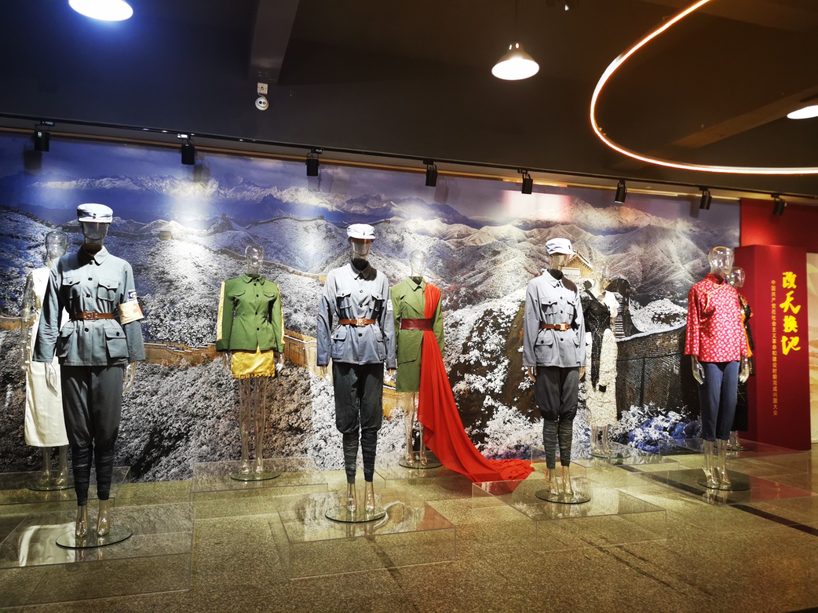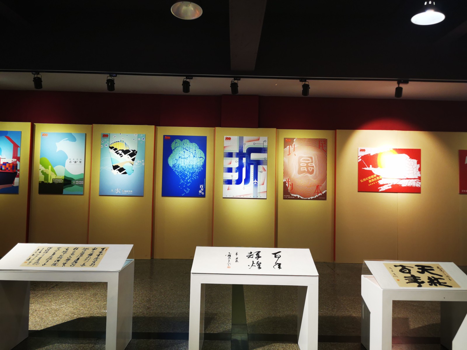 本次展览由美术系承办,是学校庆祝中国共产党百年华诞主要活动之一。整个展览分为“开天辟地”“改天换地”“翻天覆地”“惊天动地”四大篇章,涵盖了美术系舞台艺术设计与制作专业、服装与服饰设计专业、广告艺术设计专业、动漫设计专业及环境艺术设计专业等五个展示板块的美术作品。舞台艺术设计与制作专业展示板块以绘景的形式生动地展现了“中共一大会址”、“嘉兴南湖红船”和“革命圣地延安宝塔山”三个重要的历史地点与场景;服装与服饰设计专业展示板块结合专业教学开展《清溪谣》《黎明前的诀别》等剧目的服装服饰设计,以舞台服装实物进行呈现;广告艺术设计专业展示板块主要展出反映新时代新风貌的主题海报;动漫设计专业展示板块运用插画栩栩如生地再现了改革开放时期20位改革先锋人物;环境艺术设计专业展示板块通过资料查找和模型搭建等程序,等比例缩放手工制作了天安门及人民大会堂的实物模型。
