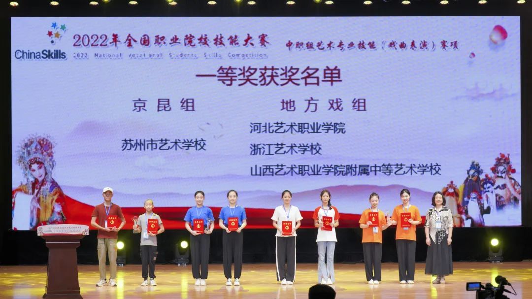 继2022年全国职业院校技能大赛高职组艺术专业技能(声乐表演)赛项夺冠之后,8月19日,2022年全国职业院校技能大赛中职组艺术专业技能(戏曲表演)赛项再传喜讯,浙江艺术职业学院戏曲学院参赛学生陈子心、王欣妍荣获地方戏组团体一等奖,指导教师周伟君、苏苏获优秀指导教师奖。这是浙艺戏曲学院参赛团队继2021年之后二度荣获“国赛”一等奖。