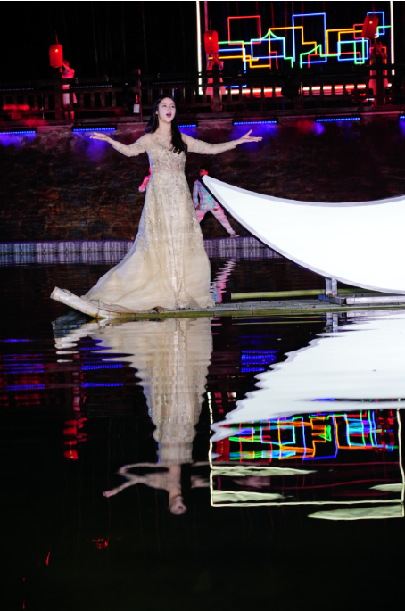 演艺专业学生林家妮说:“到达下姜村第一晚就与水上舞台进行磨合,这种演出形式让我感到新奇和激动。到了深夜,气温骤降,为了演出能够完美呈现,大家咬牙坚持,全身心投入排练。希望今后能将更多艺术作品带给乡村百姓,为建设美丽乡村贡献青春力量。”