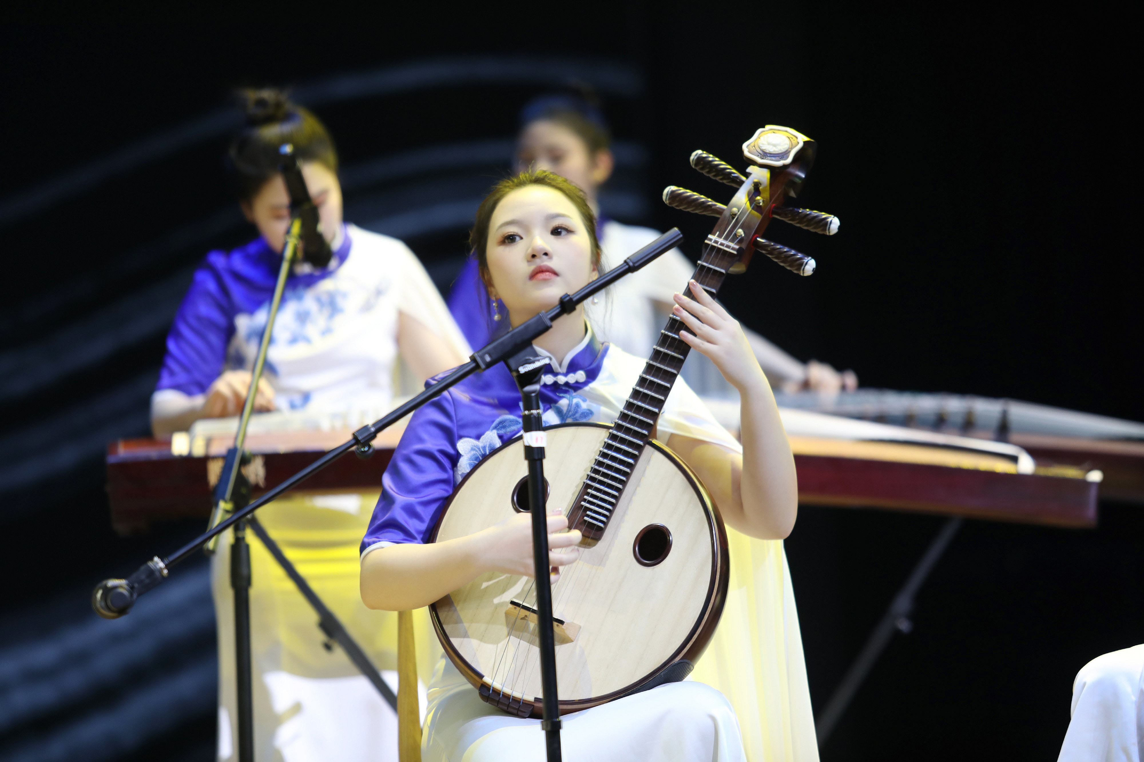 作为全国文化馆服务宣传周活动主会场的一大亮点,浙艺音乐学院“江南女乐”乐团的专场“文艺赋美”演出在西湖边精彩上演。乐团的女孩们穿着蓝白相间的礼服,身侧随风飘动的纱带如同西湖的涟漪,随着优美的音乐进入观众视野,为大家奉献了一场绝美浪漫的视听盛宴。