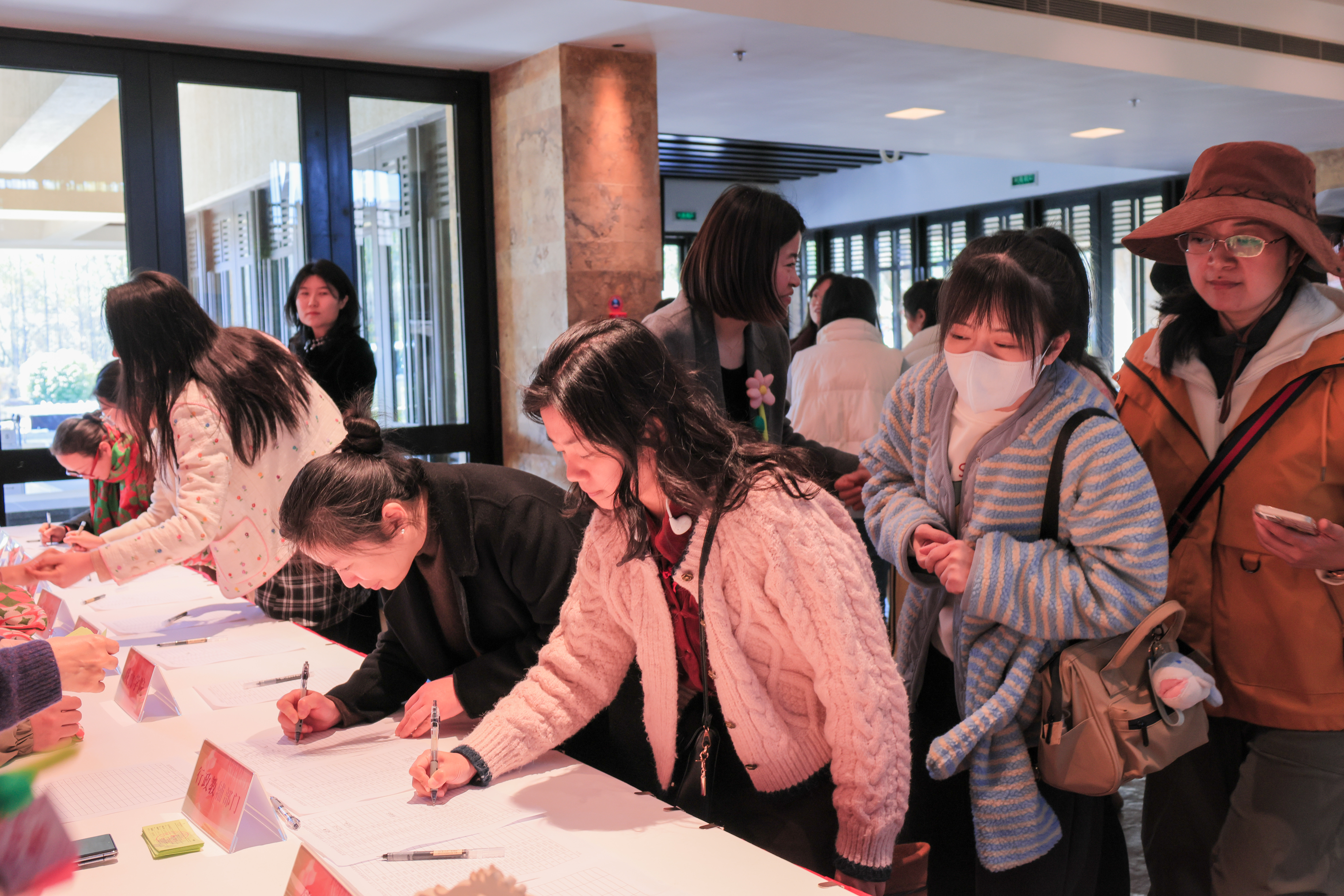 本次活动由校工会主办,校女工委组织,近两百名女教职工分批前往良渚文化艺术中心(玉鸟集)参加活动。