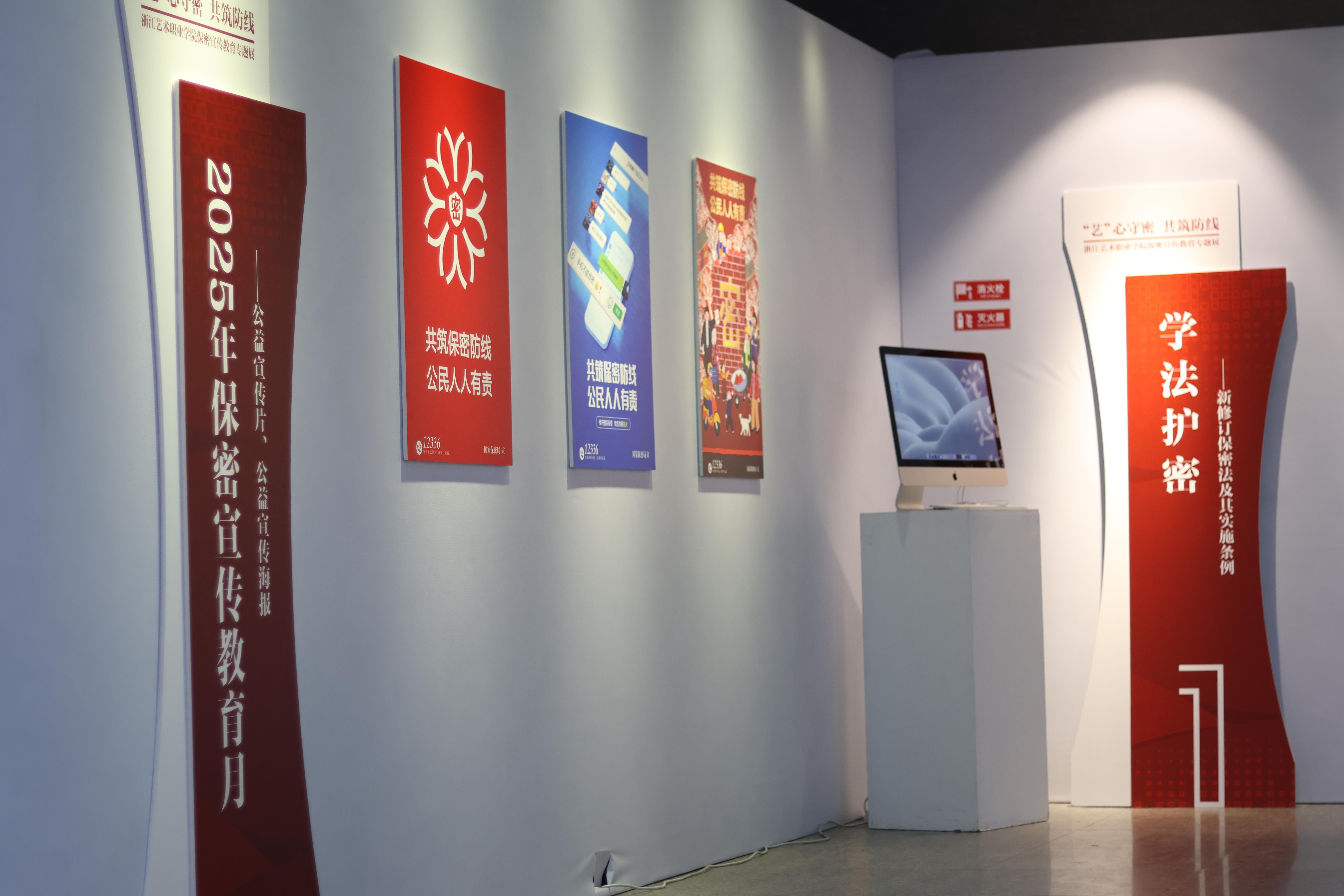 “‘艺’心守密 共筑防线”保密宣传教育专题展是学校在保密宣传教育领域的创新尝试,展览以艺术之美诠释保密之重,将保密宣传教育融入理论宣讲、专业教学和赛事展览,拓宽了思政育人空间,提升了师生安全保密意识。