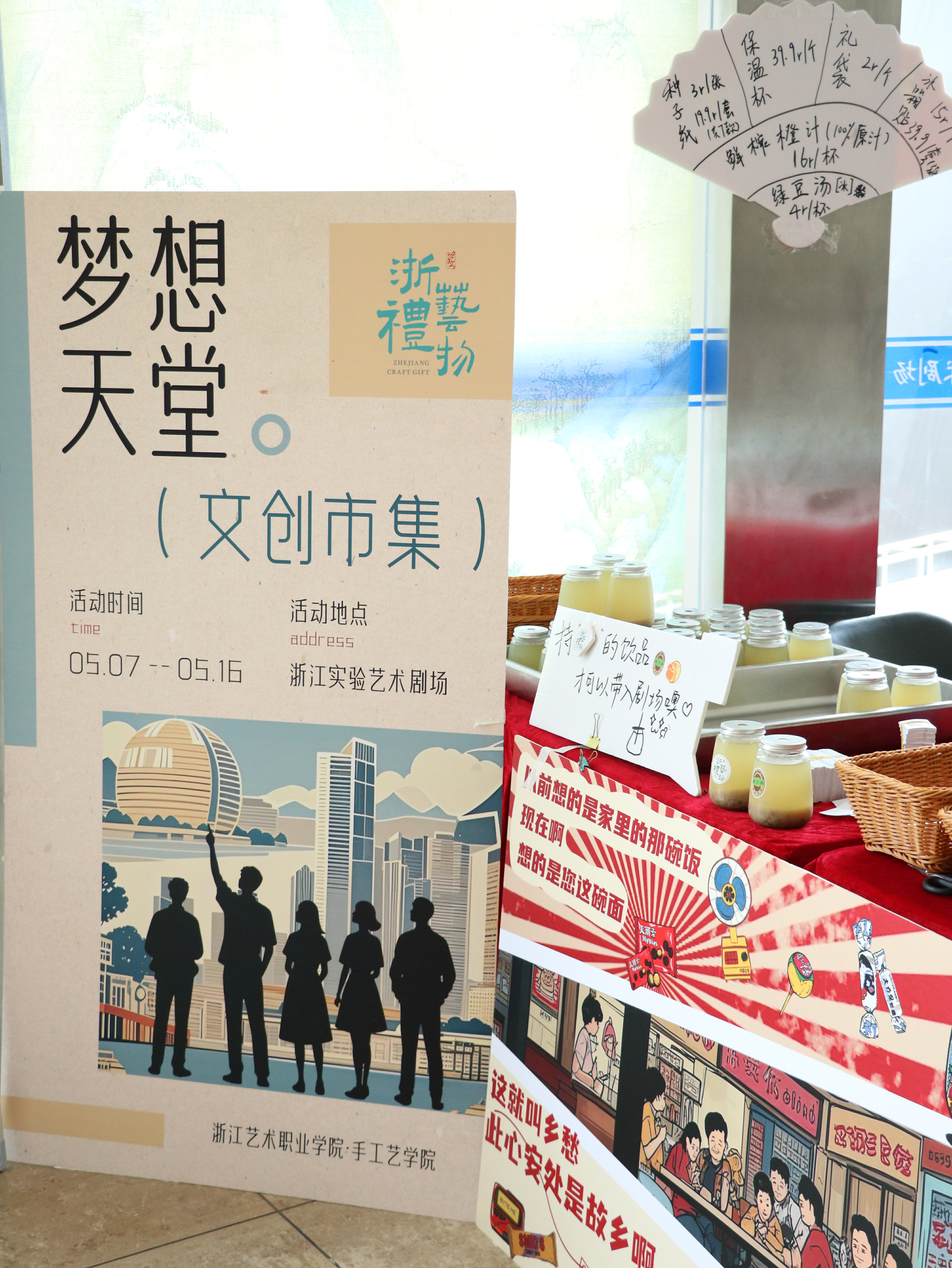 5月7日至16日,浙江省2023年度舞台艺术重大主题创作揭榜项目、原创舞台剧《梦想天堂》在浙江实验艺术剧场温情上演。这部作品由我校与杭州高新区(滨江)联合孵化,以“政府引导+校企合作+市场运作”的创新模式,实现社会效益与市场价值的双重突破,生动演绎“浙江气派、江南韵味”的艺术魅力。在话剧《梦想天堂》上演的同时,我校手工艺学院师生团队打造的浙艺礼物×《梦想天堂》话剧周边文创市集人气火爆。