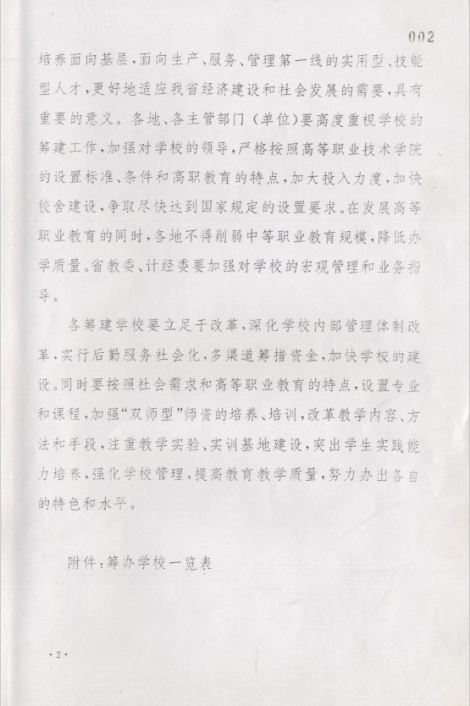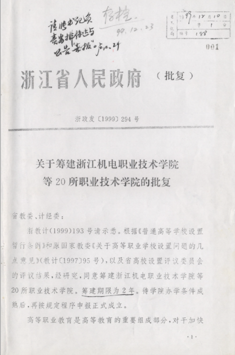 关于筹建立浙江机电职业技术学院等20所职业技术学院的批复
