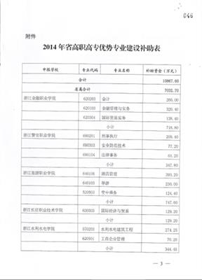 浙江省财政厅 浙江省教育厅关于发布2014年高职高专院校优势专业建设补助资金的通知
