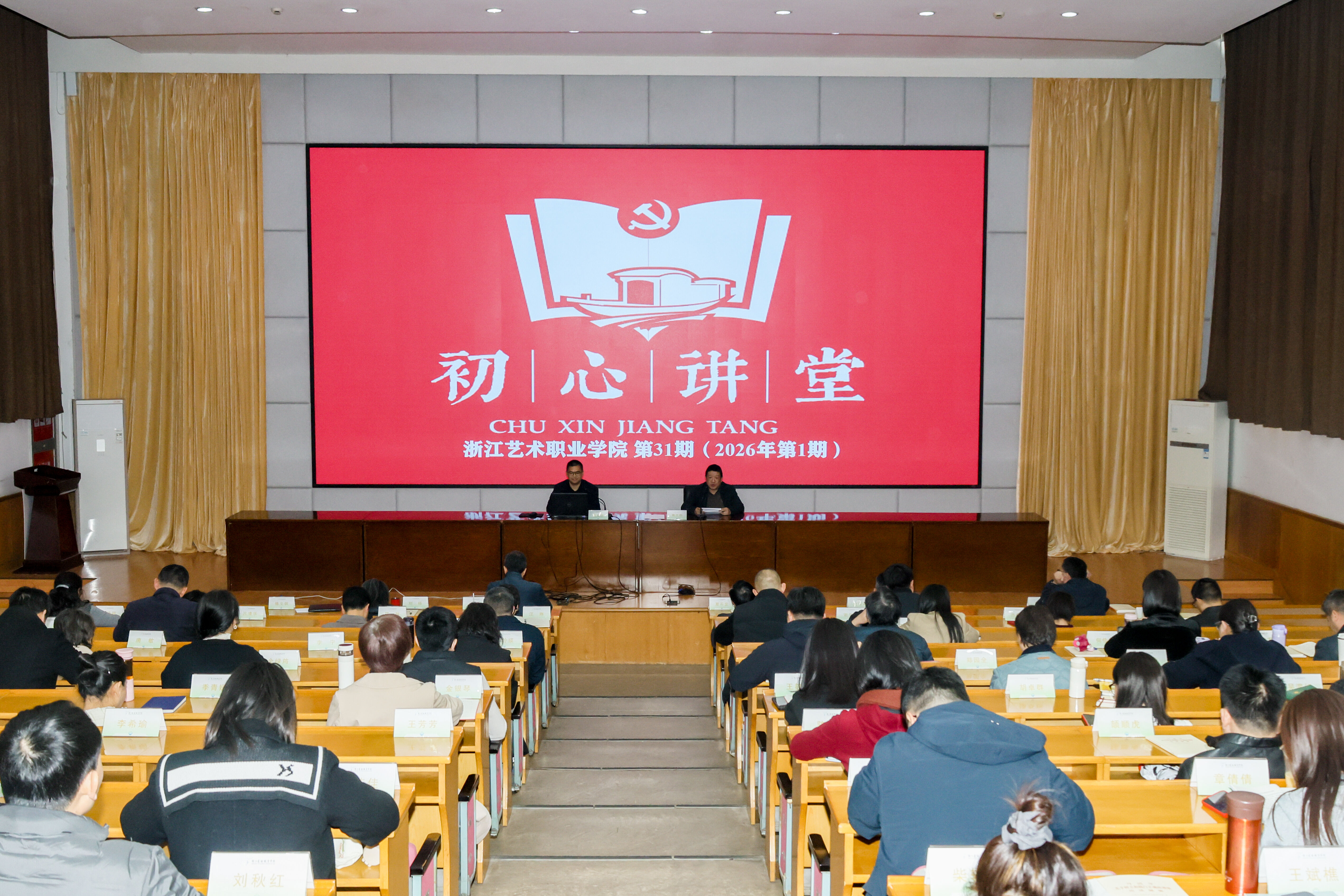<p style="text-indent: 2em;"><span style="font-family: simsun, serif;">3月26日下午,浙江艺术职业学院2026年第一期(总第31期)初心讲堂在图书信息中心报告厅举行。校党委班子成员,全体中层干部、五六级职员、主管岗位管理人员,基层党支部书记、教研室主任、专职组织员等参加学习。</span></p>