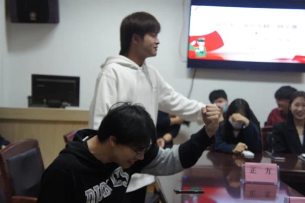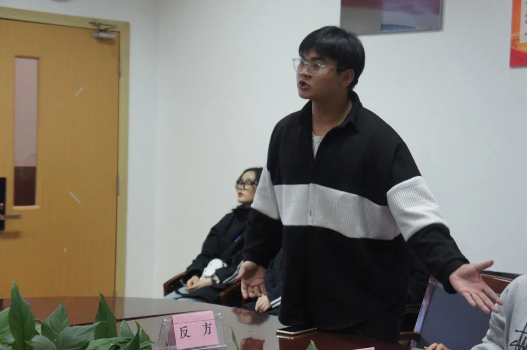 辩论赛共三个环节,首先双方陈述,正方一辩林圣轶指出,大学生加入学生会有利于毕业找工作锻炼工作能力,还可以拓展人脉。反方一辩蔡鑫伟表示,不一定不是学生会的就不能锻炼能力,不参加学生会反而可以有更多充足的时间干自己想干的事情,也能有自己的梦想。在自由辩论环节,反方二辩赖心雨认为,每个人都有自己的追求,即使在学生会的干过很多事情,但是回归生活也没什么大的改变,不能只看学生会带来的利益。此时,正方三辩侯星熠也提出了自己的想法,他认为大学生其实不需要过早考虑经济来源,更应该感受充实忙碌的大学生活。