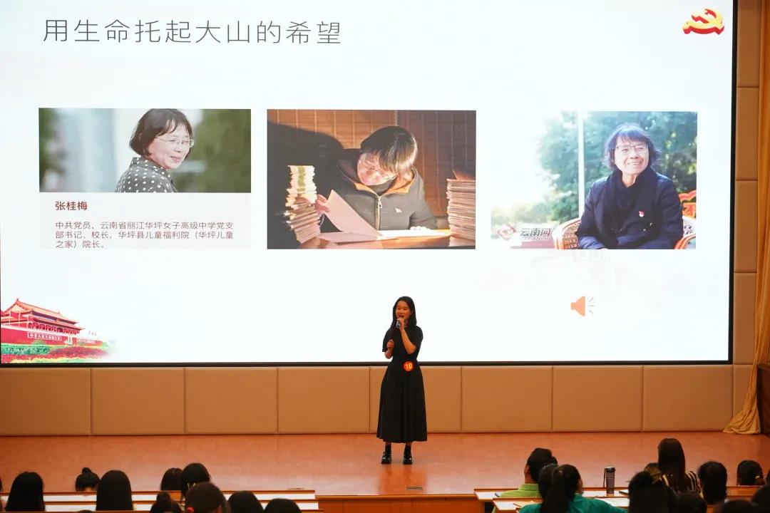 决赛中选手们以“建党百年故事汇”为主题,进行演讲。参赛选手紧扣演讲主题,或娓娓道来共产党人的追梦故事,每个人都在实现理想的道路上奋勇前行;或分享自己的个人感悟,期待建设更加美好地未来中国;或情真意切,表达对于英雄人物的无限崇敬;或慷慨激昂,道出新时代浙艺学子的奋斗精神;或掷地有声地告诉我们长征精神的丰碑历久弥新;或期待未来点亮梦想,志存高远,坚韧而行。