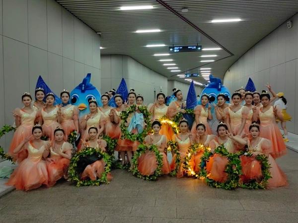 本次开幕式由金桂为主要元素,通过科技手段打造了一个爱的舞台。而我院32位同学们有幸参与这次连接亚洲的盛大演出,在包括第一篇章《心相约》、第三篇章《梦闪耀》和主题曲《我的深情为你守候》等节目中扮演金桂少女。”