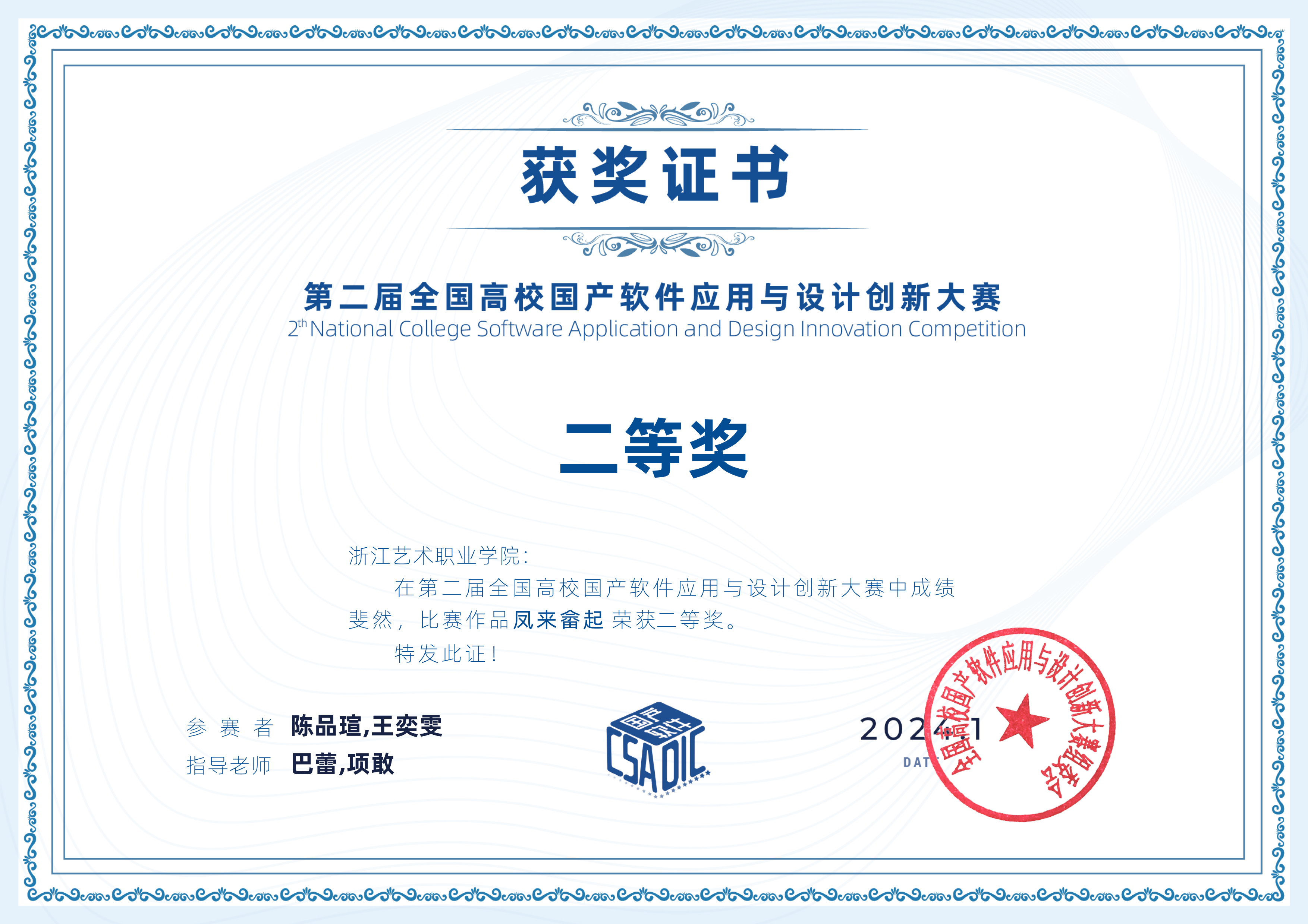 ▲全国高校国产软件应用与设计二等奖