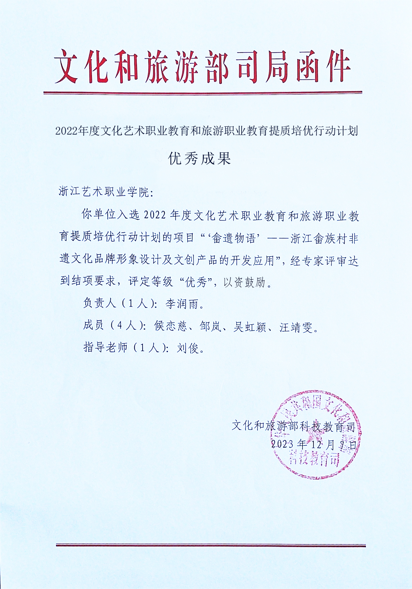 ▲入选2022年度文化和旅游部提质培优行动计划优秀成果