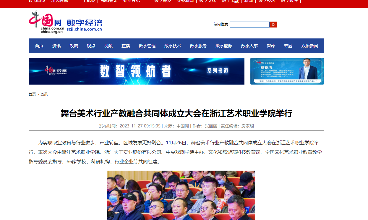 为实现职业教育与行业进步、产业转型、区域发展更好融合。11月26日,舞台美术行业产教融合共同体成立大会在浙江艺术职业学院举行。本次大会由浙江艺术职业学院、浙江大丰实业股份有限公司、中央戏剧学院主办,文化和旅游部科技教育司、全国文化艺术职业教育教学指导委员会指导,66家学校、科研机构、行业企业等共同组建。