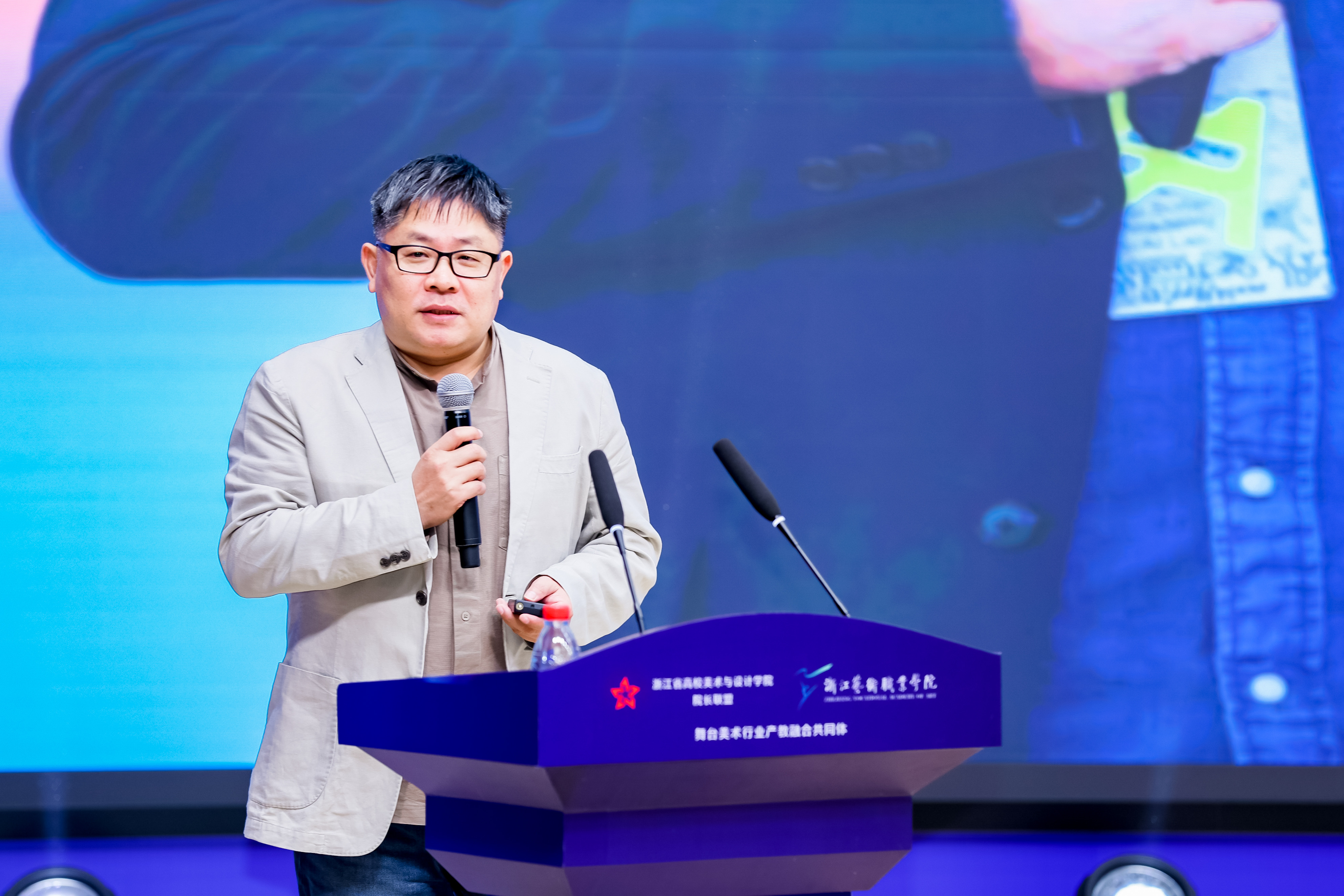 联盟副秘书长、浙江艺术职业学院校长、党委副书记施俊天为论坛作开幕致辞和会议总结。他指出,随着社会对艺术和设计人才需求的日益多元化,产教融合已经成为推动高校美术与设计教育发展的重要途径,把握在新领域新赛道弯道超车的战略机遇,就必须在产教融合中不断丰富高等教育的新内涵。本次论坛围绕三个聚焦:一是聚焦四链贯通,教育链、产业链、人才链和创新链;二是聚焦四个合作,合作办学、合作育人、合作就业、合作发展,实现产业、专业、就业三联动;三是聚焦四景运通,产学场景联通,产研场景畅通,产训场景贯通,产创场景融通。希望通过这次论坛,进一步深化省内美术与设计教育领域的交流合作,进一步强化资源共享、优势互补、协同创新,为浙江省乃至全国高校美术与设计教育的发展做出更大的贡献。