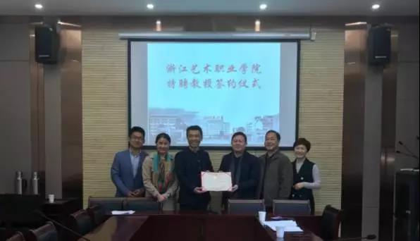 近日,中国丝绸博物馆研究馆员、技术修复部主任汪自强作为浙江艺术职业学院特聘教授的签约仪式在文化管理系举行。浙艺副院长沈军甫向汪自强颁发了聘书。