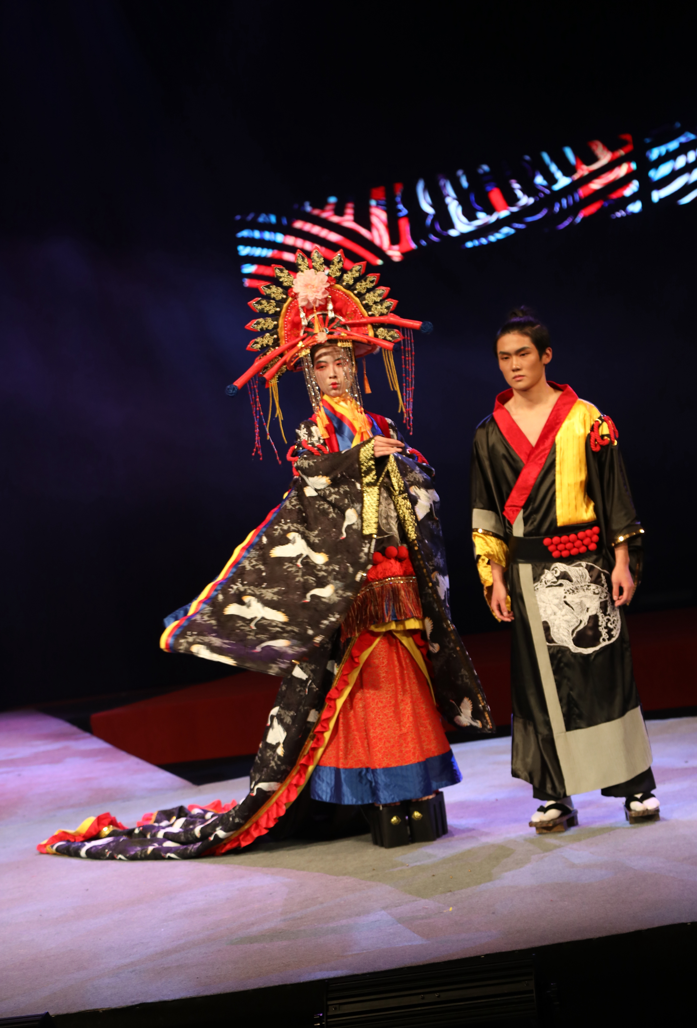 华丽的舞台被灯光照亮,当音乐响起,模特身穿着极具特色的服饰,从T台的一侧走上来,光彩夺目。从灵感的开始到一件完整的服饰作品,它们是几个月以来16级服装班同学们和老师们一针一线缝纫而成的,承载着所有设计者对服装设计艺术的追求,凝结着他们苦学多年的技艺。服装秀的一大亮点就是穿插了戏剧表演的方式展现服饰,让服饰不局限于模特走秀,而是以多元化的方式展现给观众。节选剧目有5个:有颇具传奇色彩的《逐鹿之战》,有啼笑皆非的《仲夏夜之梦》,有情缘未了的《牡丹亭》,有渴望自由的《恶女花魁》,还有改编版《倩女幽魂》。师生们结合剧目的人物角色,对服装进行创意化设计,在原有造型的基础上根据人物性格特点及服装的现代流行趋势进行设计创新。