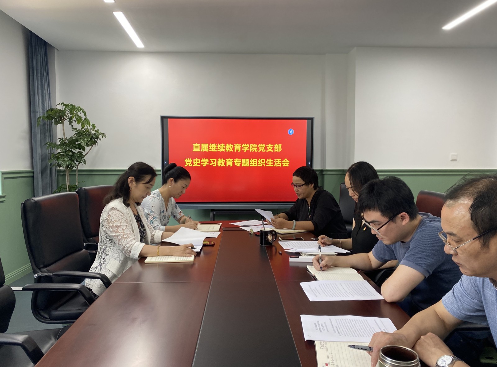 7月15日下午,继续教育学院党支部召开党史学习教育专题组织生活会,浙艺院长黄杭娟以普通党员身份参会。