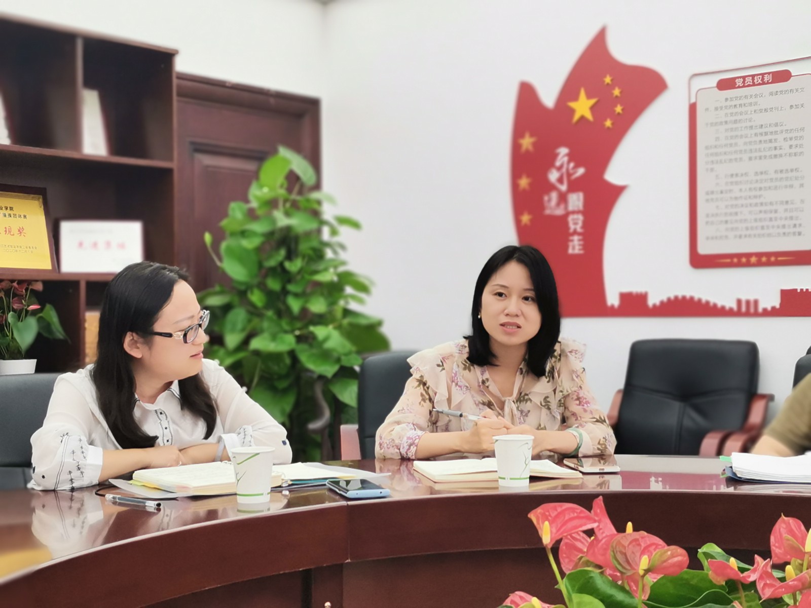 夏开堂对戏剧系近期开展的工作表示充分肯定,就师资队伍建设、平台建设、管理机制、学生心理健康教育四个方面进行答疑和指导,并提出四点希望:一是加强党建引领。党建即生产力,组织建设要更有力,要积极发挥党组织战斗堡垒作用,要加强学生思想政治教育,发挥学生先锋模范带头作用。二是紧抓管理增效。完善管理机制,刚性与效率相结合,执行好党政联席会议、党总支委员会制度,提升管理成效。三是注重团结聚力。从系领导班子做起,同心同向共力,创设干事创业的良好氛围,团结全系教师高质量发展。四是强化服务育人。系领导班子和管理人员要树立良好的服务意识和服务理念,加强人文关怀,推进服务育人、三全育人。