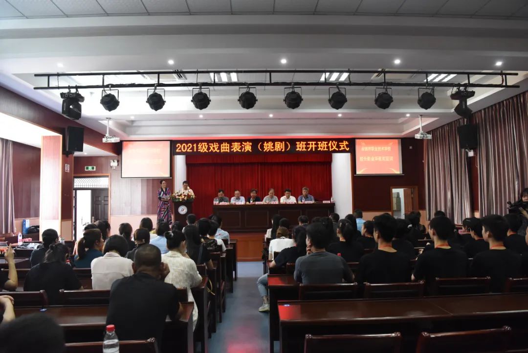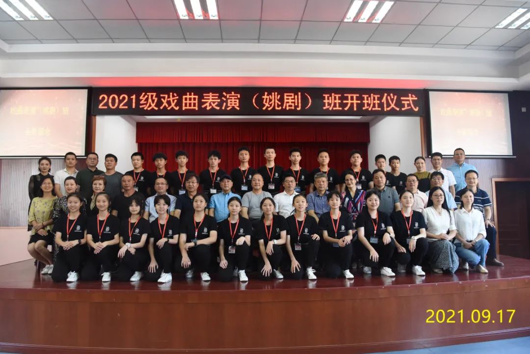 9月17日下午,浙江艺术职业学院戏曲学院党总支书记兼副院长谢青,余姚市文化和广电旅游体育局党委副书记、副局长董斌,余姚市教育局党委委员、副局长张文表,余姚市人社局党委委员、副局长金利明,余姚市财政局行政事业科科长余立,余姚市职业技术学校校长彭金华,余姚市姚剧保护传承中心主任倪乐辉出席2021级戏曲表演(姚剧)班开班仪式,余姚市文化和广电旅游体育局副局长周凌宏主持。
