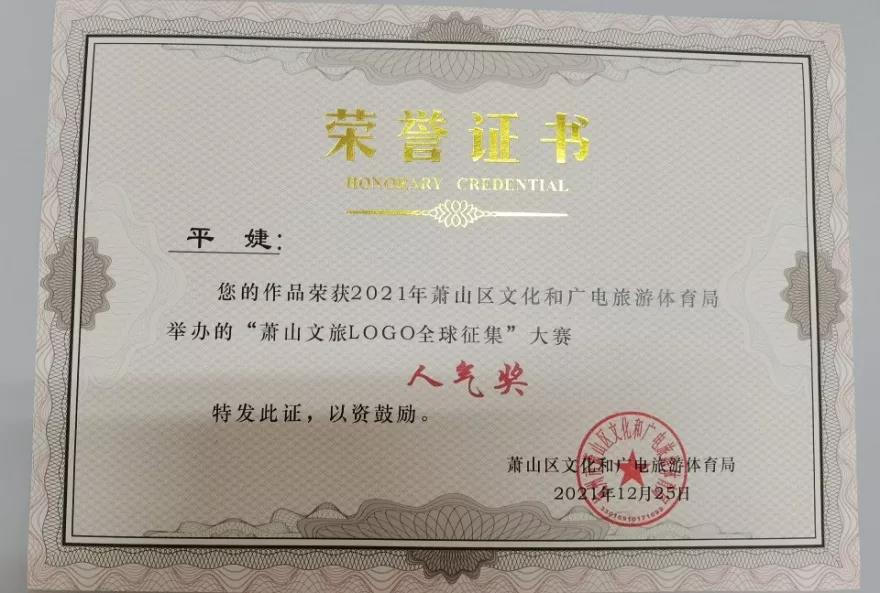 2021年9月萧山区文化和广电旅游体育局启动LOGO全球征集活动,自大赛启动征集以来,主办方收到了来自全国各地的LOGO设计方案,共计300余份。20级广告艺术设计班5位同学顺利进入网络评选,3位同学获得人气奖(二等奖)。