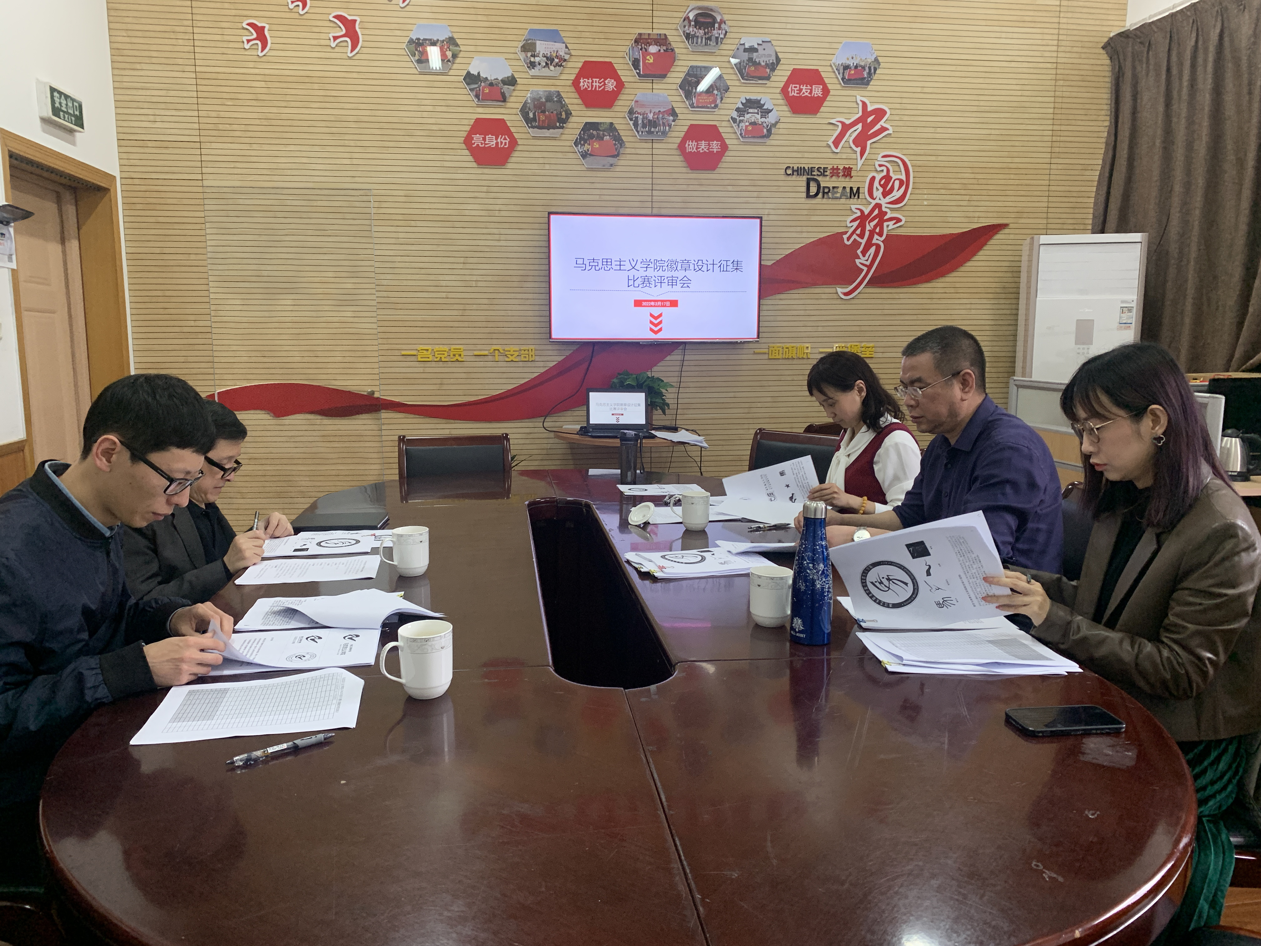 为树立浙江艺术职业学院马克思主义学院的品牌形象,展示学院特色、建设高品味的马院文化,增强广大在校学生对于马克思主义理论、中国特色社会主义理论体系的学习热情。历时2个半月的马克思主义学院院徽设计大赛于3月17日上午在学院13102会议室对入围作品进行了终评。校党委委员、宣传部(统战部)部长马向东莅临此次评审会议并担任评审会主评,手工艺学院副教授叶峰泉、设计学院教师商易文、马克思主义学院直属党支部书记、副院长陈毅、副院长胡卓群参加评审会议,评审会陈毅主持。