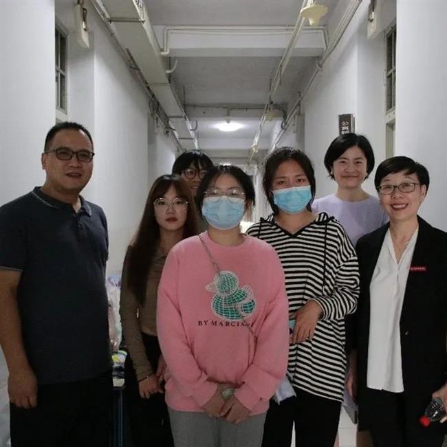 设计学院领导班子来到新生寝室,走访慰问新生入住情况,耐心解答同学们的疑问,鼓励同学们尽快适应校园生活,并为报到当天生日的新生送上了精心准备的生日礼物和蛋糕。