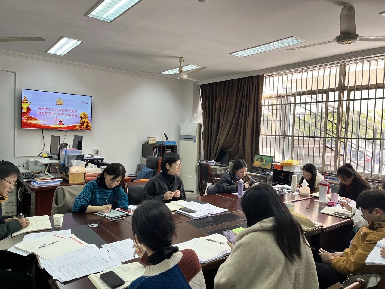 1月17日下午,马克思主义学院直属党支部开展理论学习中心组扩大学习会暨师德师风专题党课。直属党支部书记、院长王筱芽传达学习领会习近平在二十届中央纪委三次全会上发表重要讲话精神、新修订的《中国共产党纪律处分条例》,并集中观看由中央纪委国家监委宣传部与中央广播电视总台央视联合摄制的年度反腐大片《持续发力 纵深推进》。