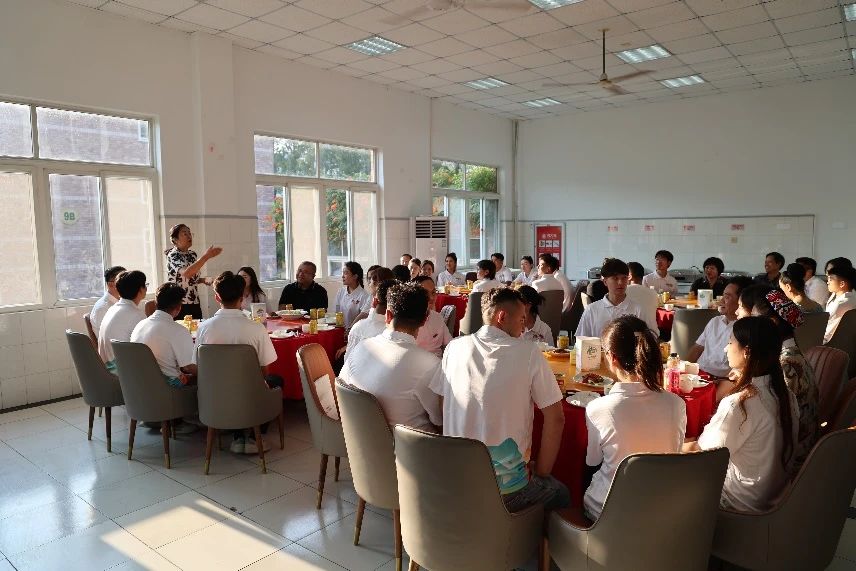 9月9日傍晚,新疆理工学院党委常委、副校长贺东辉,浙江艺术职业学院党委书记薛亮,校长施俊天,党委副书记夏开堂,副校长徐芳、刘秀峰,演教学院院长潘骅及班主任与27名新生们在食堂共进晚餐。