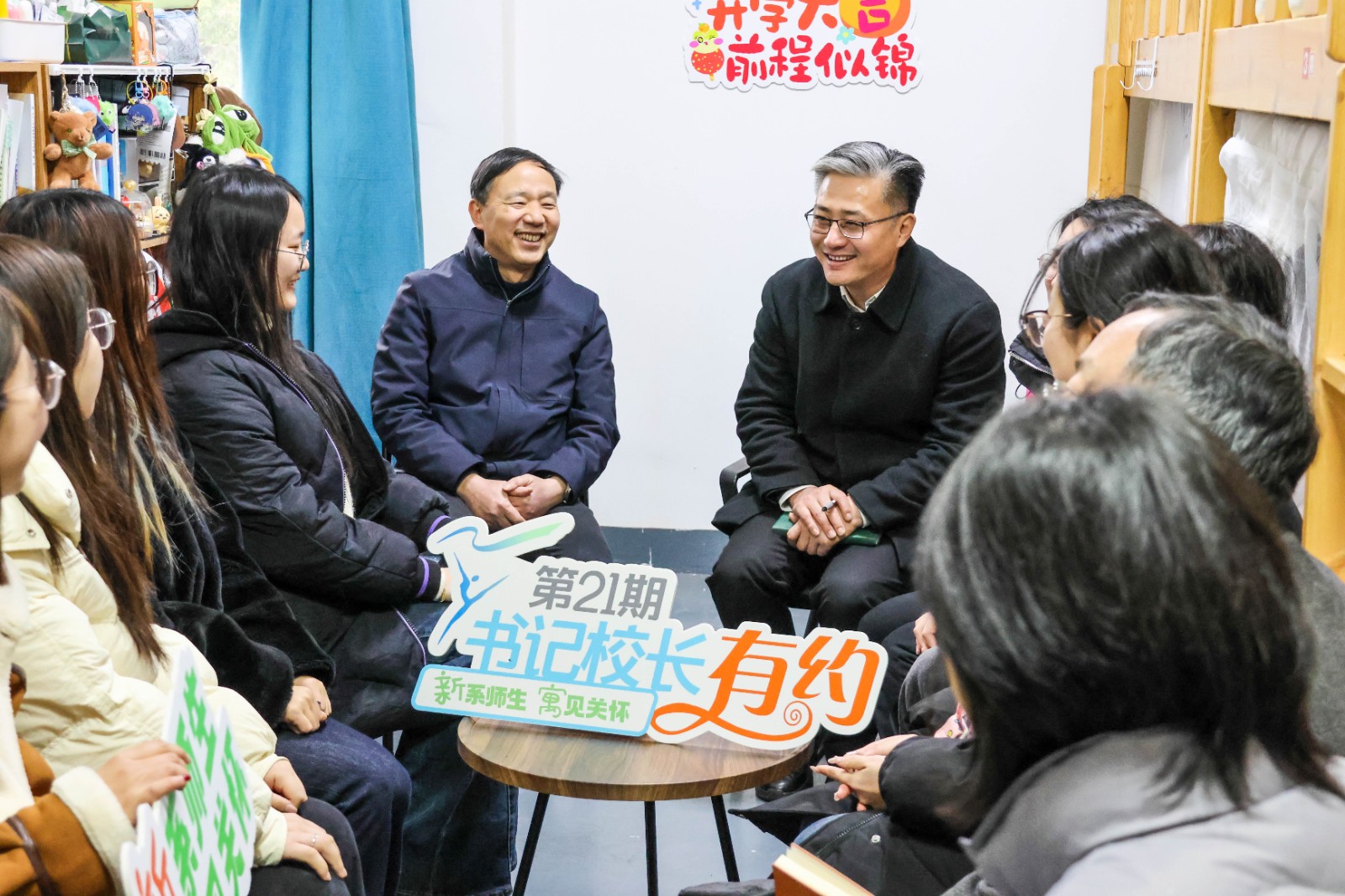 我校开学第一周,校党委书记薛亮、副书记夏开堂一行深入学生公寓,与同学们面对面交流,倾听心声,传递关怀。