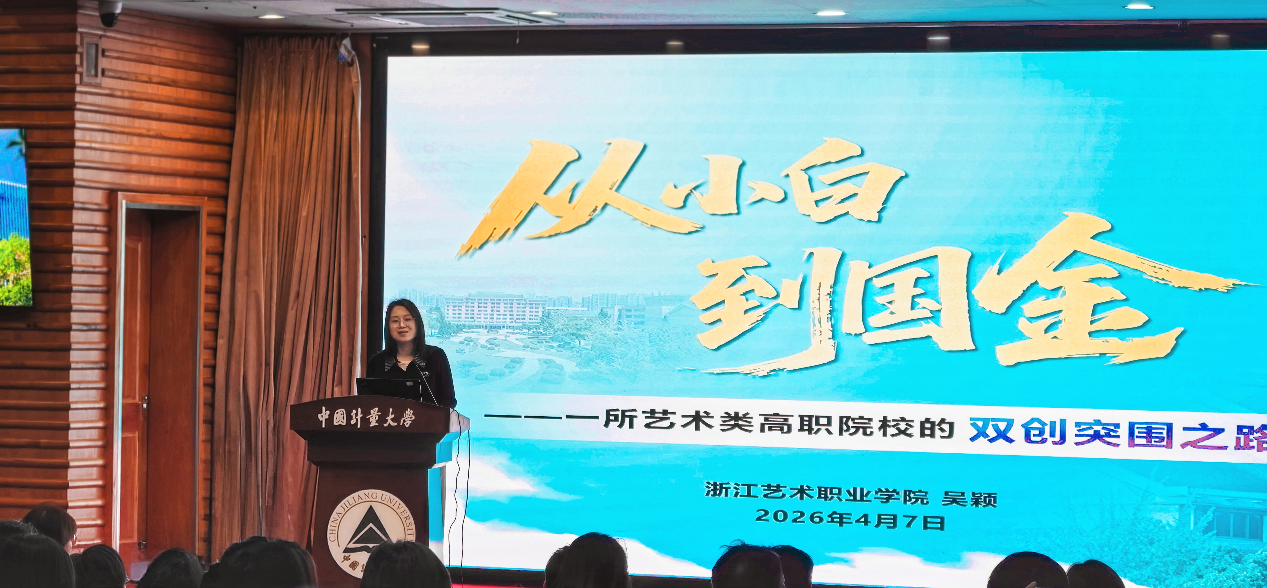 我校学工部副部长吴颖作为唯一高职院校代表,在赛事组织经验交流环节以《从“小白”到国金——一所艺术类高职院校的双创突围之路》为题进行分享。会上,她回顾了我校在创新创业领域的探索历程,坦言作为艺术院校,浙艺双创基础相对薄弱,起步阶段面临不少挑战。在学校党委班子的关心指导下,学校逐步探索出务实有效的实践路径,凝聚起攻坚克难的工作干劲:通过高位推动与刚性考核压实责任,构建全链条保障体系与全员动员机制,依托大学生众创空间以校为家、以拼克难,同时坚持以双创赋能学生成长蜕变,在全情投入与全员协作中,实现了国家级金奖的历史性突破。
