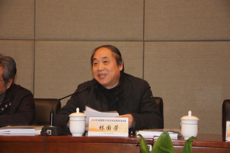 林国荣在致词中对于莅临学院的领导和参训人员表示欢迎。他介绍了浙艺院的基本办学情况,重点介绍了文化培训工作的基本情况。2014年学院根据全省乃至全国文化发展需要,充分整合利用院内外教育教学资源,切实开展全国文化干部培训、全国基层文化队伍培训、全省农村文化礼堂系列培训、全省民营文艺表演团体业务骨干培训、省内地市县文化干部培训、春雨工程培训等各类培训项目,全年完成了40个培训班次的培训任务,文化培训工作的品牌效应和社会效益日益凸显。