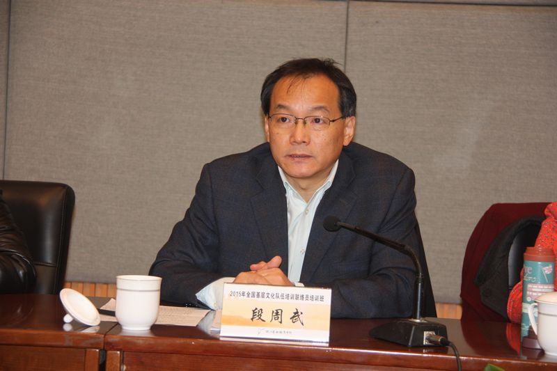文化部公共文化司副司长周广莲主持开班仪式并讲话,浙江艺术职业学院党委书记林国荣致欢迎词,浙江省文化厅副厅长柳河、中央文化管理干部学院副院长段周武分别讲话。
