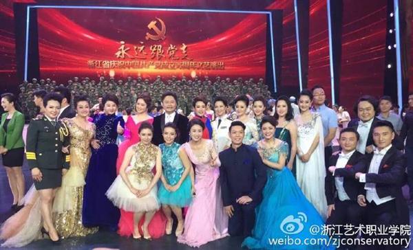 由浙江省委宣传部、省文化厅主办的“永远跟党走”浙江省庆祝中国共产党成立95周年大型文艺演出节目于6月30日晚在浙江卫视播出。浙江艺术职业学院作为参演单位参与整场节目的创作和演出。