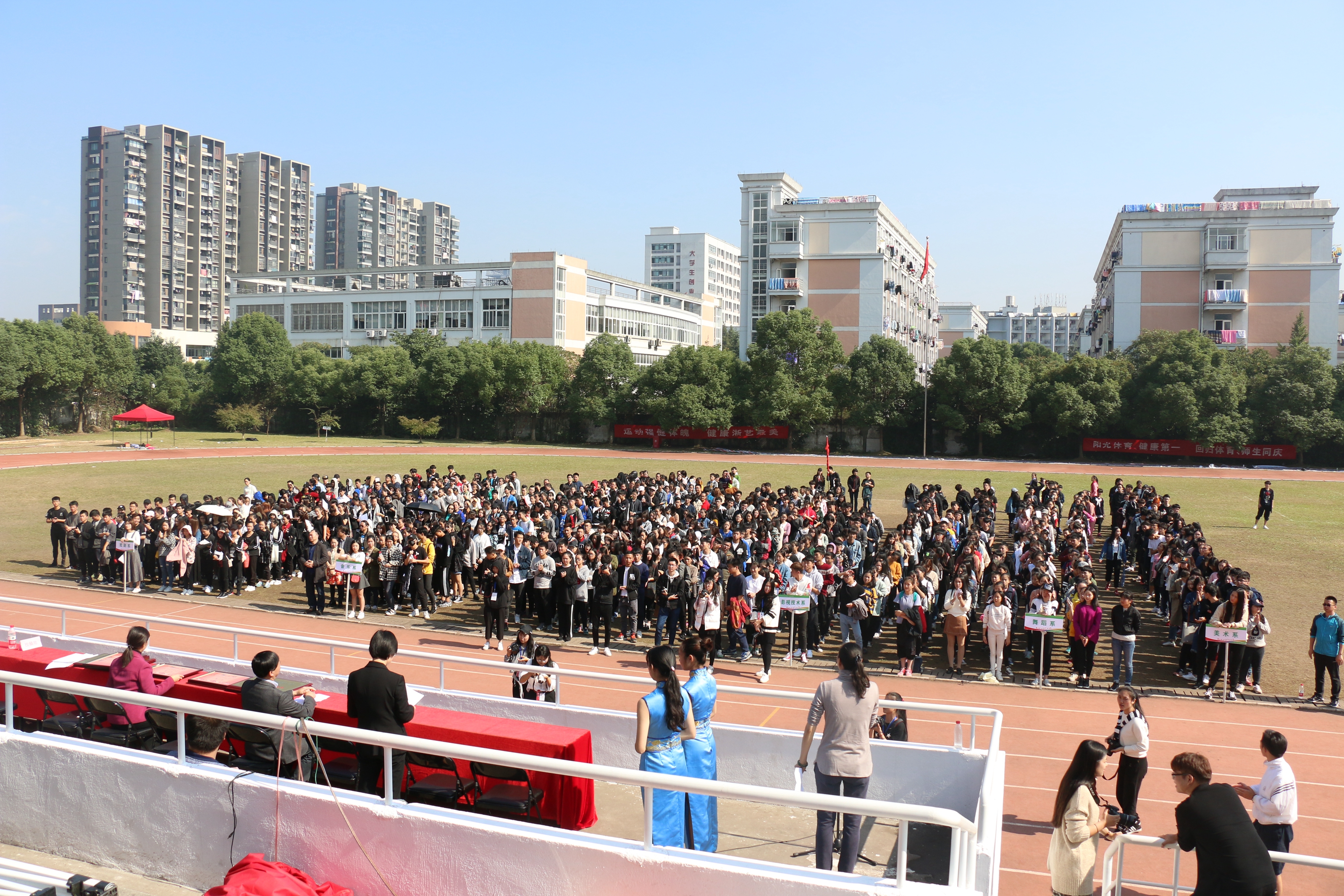 11月4日,历时一天半的浙江艺术职业学院第十三届田径运动会经过各项赛事的精彩角逐和紧凑、顺利的进行,在田径场圆满落幕。院党委书记朱海闵、院长黄杭娟、党委委员、纪委书记夏开堂等学院领导出席闭幕式,基础教学部副主任(主持工作)郑园全主持闭幕式。