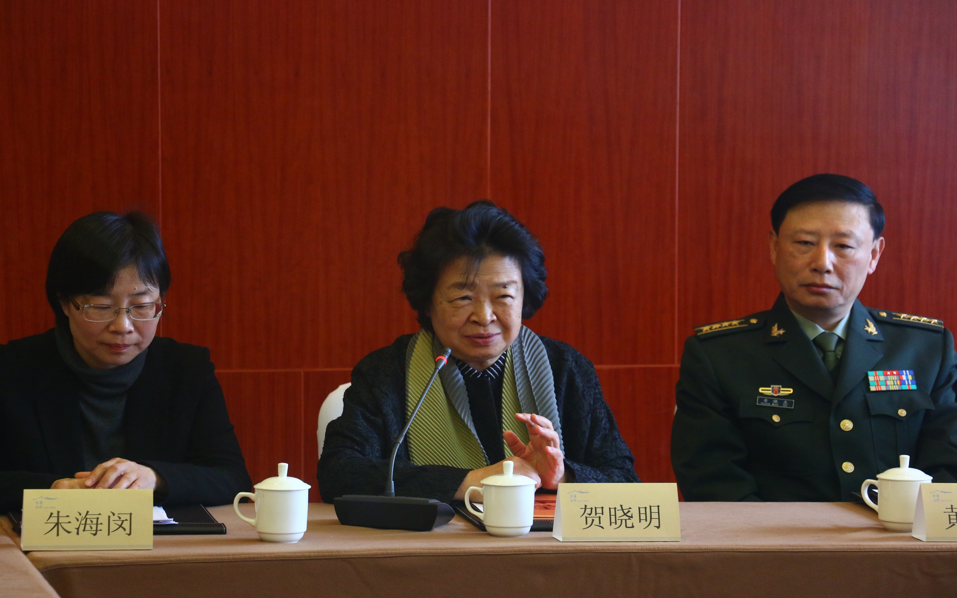 贺晓明在会上发言。她说,我小时候是仰望着黄司令,听他讲过很多历史事件、战友、战斗故事,觉得穿军装的大人们都好忙。后来,黄司令成了贺龙传记领导小组组长,我跟着他工作,又有过不少接触。黄司令等老一辈的音容笑貌和有些具体事情我们都亲眼见过,也见证过一些历史片段,我们对电视剧来说就是一个桥梁,说一说这件事到底是怎么回事。贺晓明对电视剧提出了希望,黄司令指挥的部队是离不开老百姓的部队,是为了老百姓利益而打仗的,电视剧里群众场面要多,群众角度要多。她还提到最近大火的电视剧《人民的名义》,我们的作品是拍给年青人看的,要把好的传统传承下去,希望像《人民的名义》一样获得广泛认同。